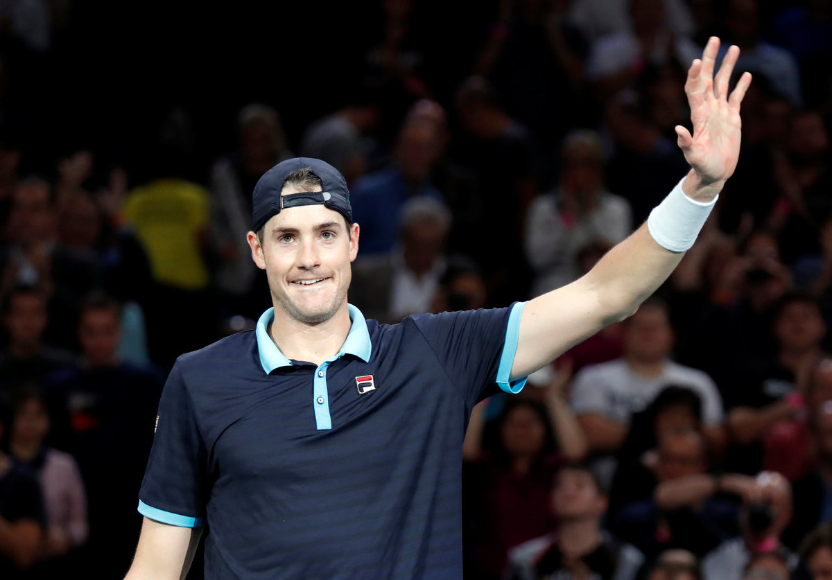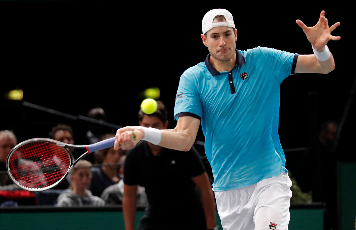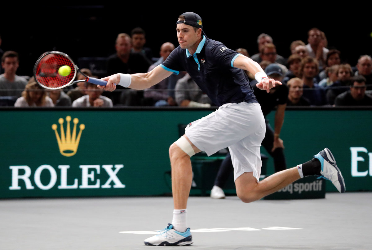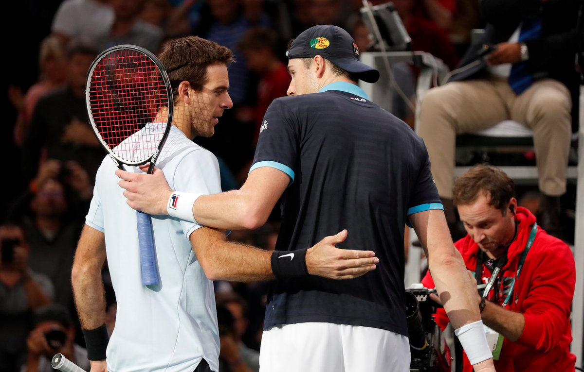 PARIS (Reuters) - John Isner pushed on towards an ATP Tour finals spot when he reached the semi-finals of the Paris Masters with a 6-4 6-7(5) 6-4 win over Argentine Juan Martin del Potro on Friday as the tournament dealt with the withdrawal of Rafa Nadal.