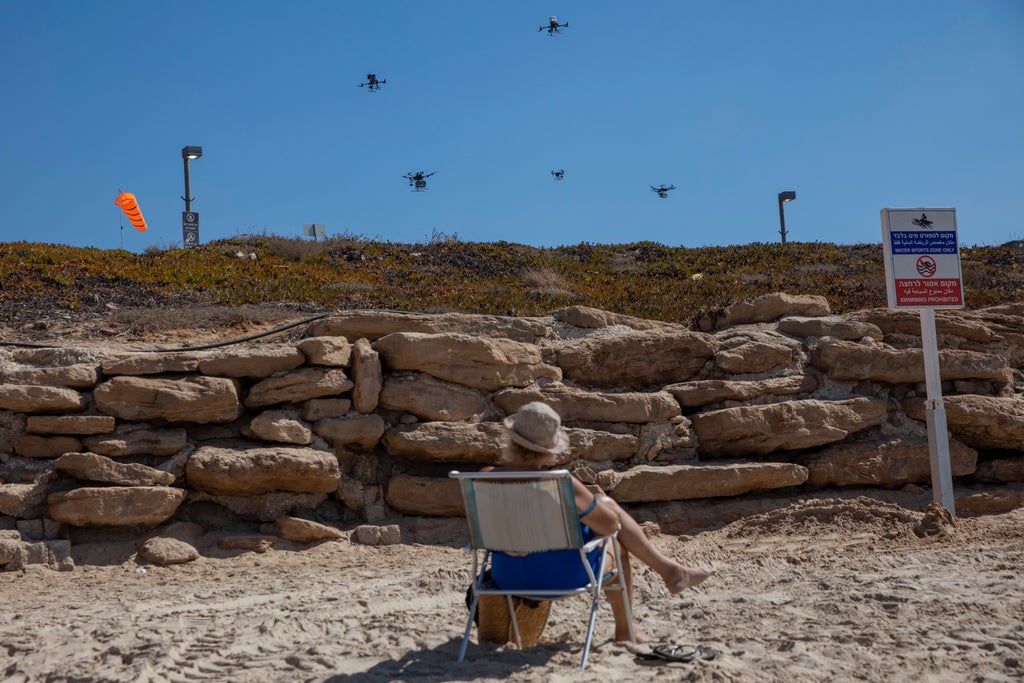 Dozens of drones floated through the skies of Tel Aviv on Monday, ferrying cartons of ice cream and sushi across the city in an experiment that officials hope provided a glimpse of the not-too-distant future.