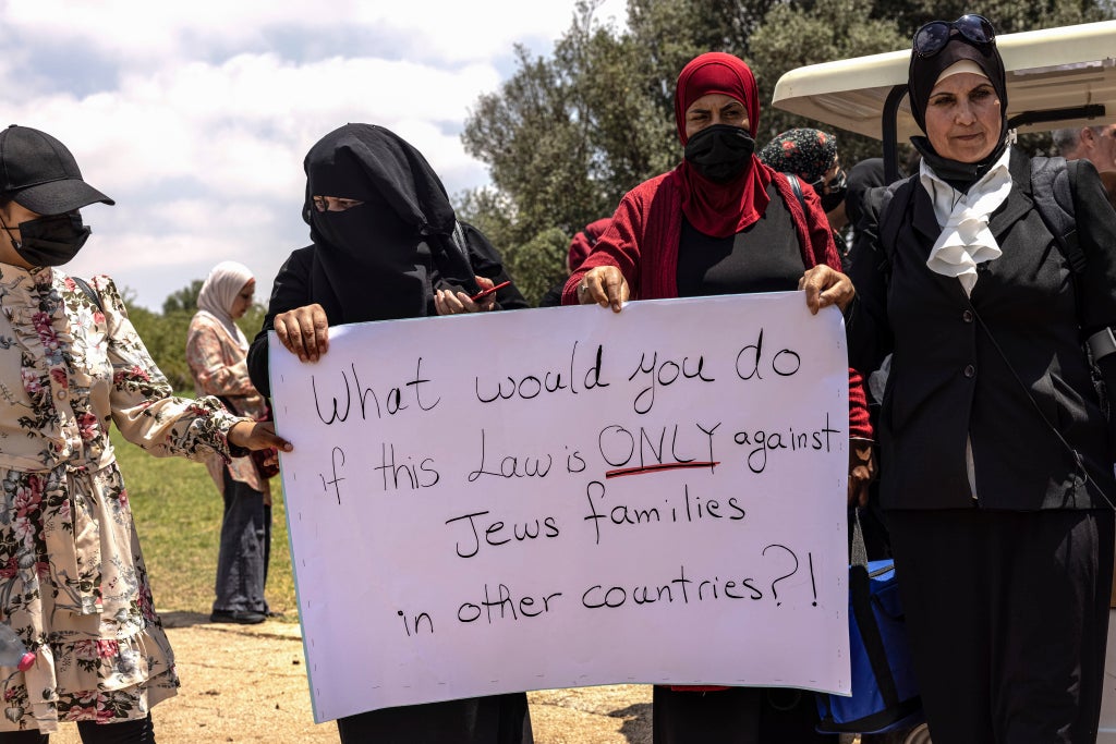 Israel’s Arab minority has close familial ties to Palestinians in the West Bank and the Gaza Strip and largely identifies with their cause. Arab citizens view the law as one of several forms of discrimination they face in a country that legally defines itself as a Jewish nation-state.