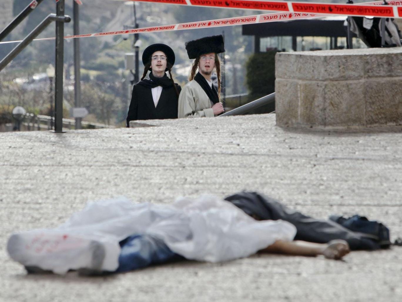 At least 20 Israelis have been killed in the knife, vehicle and gun assaults since the start of October. An American student, Ezra Schwartz, 18, studying at a yeshiva during a gap year, was killed while distributing food to Israeli soldiers in the West Bank. A Palestinian mobile phone salesman, Shadi Arafa, 24, was killed in the same attack while on his way home. An Eritrean refugee mistaken for a terrorist was shot and then beaten to death by an Israeli mob during an attack at a bus station.