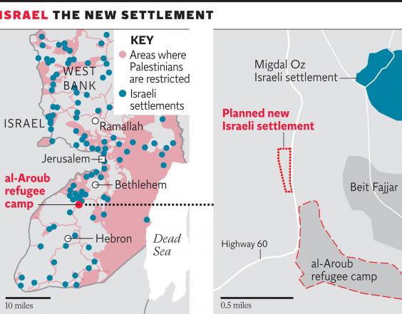 The settlement, approved by defence minister Moshe Yaalon in October but which only became public last week, will arise on a strategic point on the road that connects the southern West Bank cities of Bethlehem and Hebron. The road is already a focus of stone throwing by Palestinian youths against passing Israeli cars, and al-Aroub has seen increasing clashes in recent months as part of what some Palestinians consider to be a new popular rising, which began in October