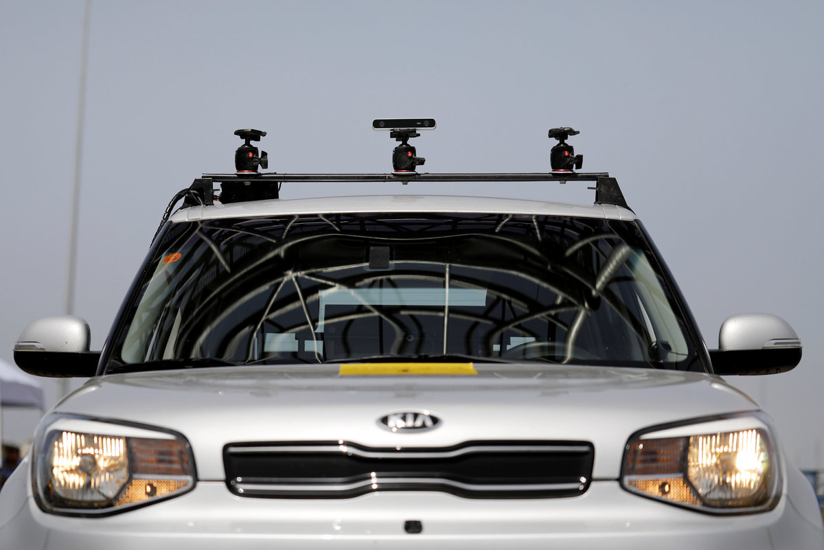 The five-seater, equipped with cameras, infrared and artificial intelligence, kept a safe distance from another car. Autonomy - without relying on the expensive laser detection system known as lidar which Waymo and GM use - has become a quest for the industry.