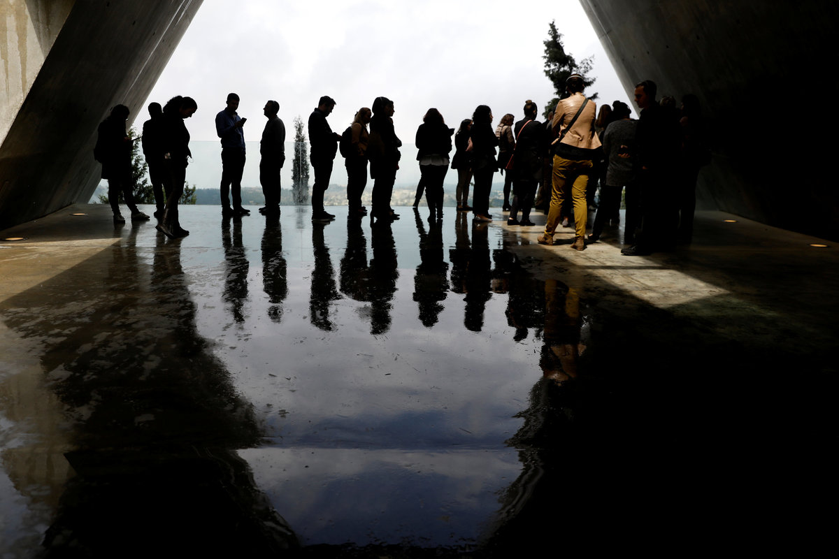 People visit the Holocaust History Museum at the Yad Vashem World Holocaust Remembrance Center in Jerusalem ahead of the Israeli annual Holocaust Remembrance Day, April 10, 2018. Picture taken April 10, 2018. REUTERS/Ronen Zvulun