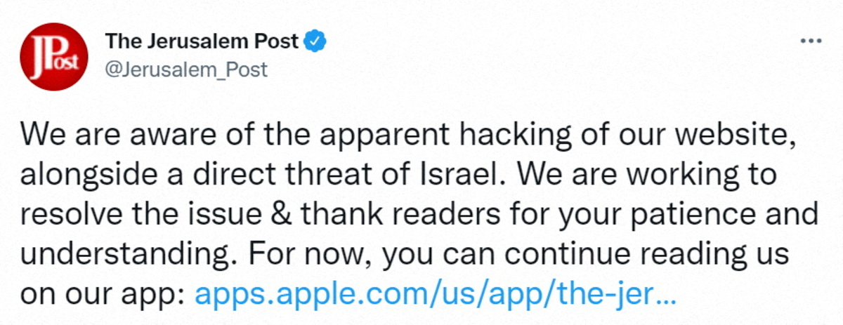 The Jerusalem Post, an English-language daily, tweeted that it was working to resolve the issue.