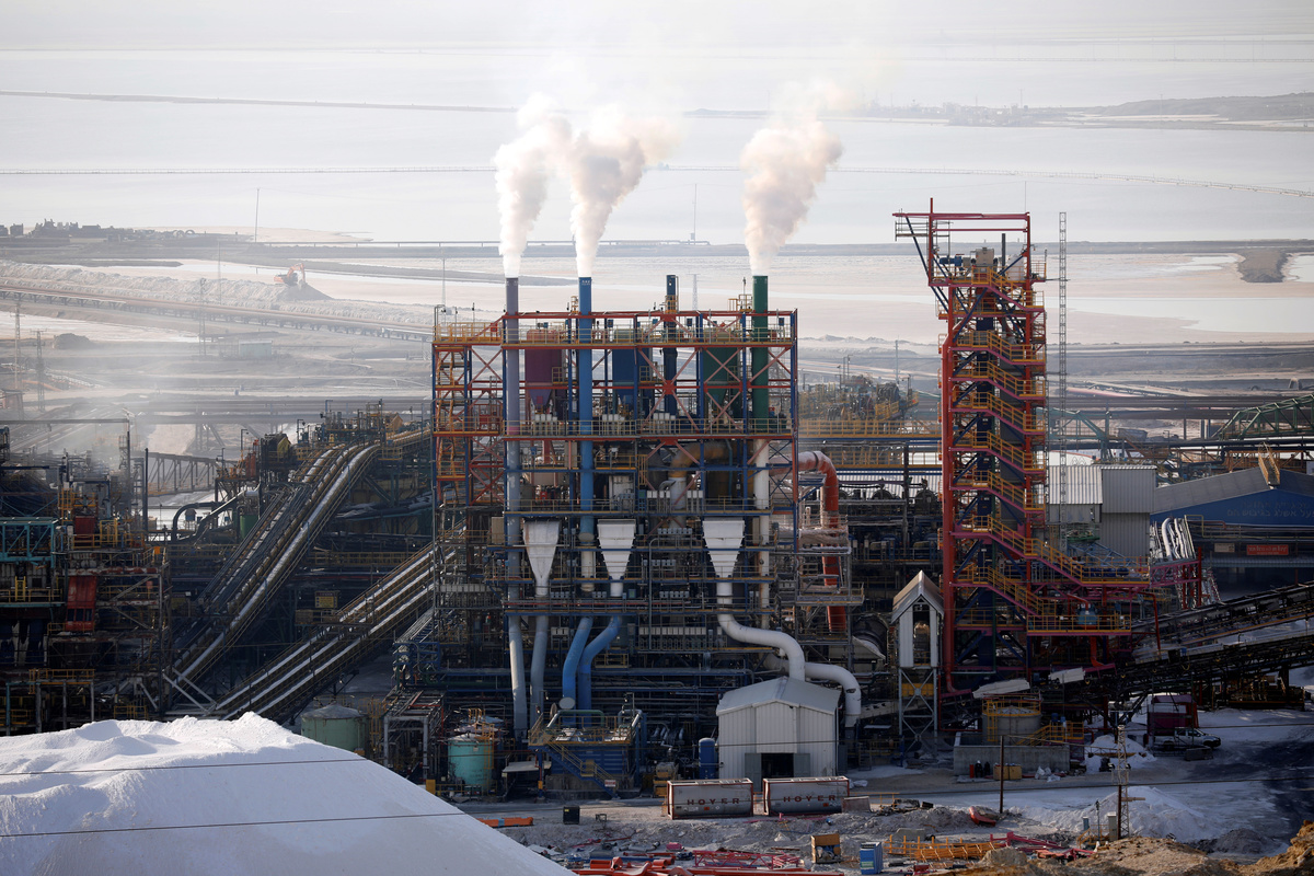 Costs at the factory are lower than at conventional mines, which are often hundreds of meters deep. Solar evaporation is less energy intensive and the climate allows mountains of potash to be stored outside and sold when prices are high.
