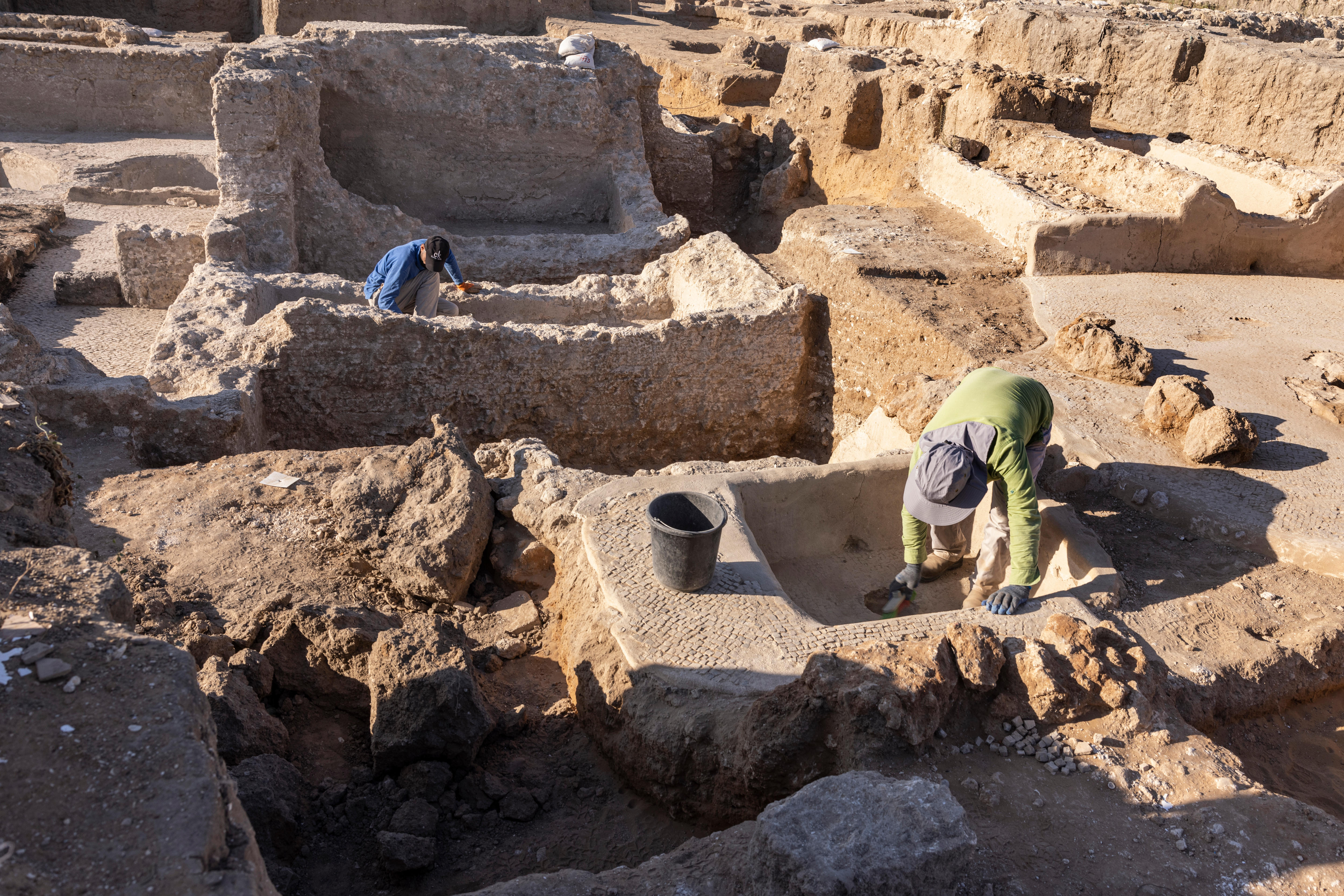 Excavations uncovered a cluster of five wine presses, several warehouses, kilns for producing clay storage vessels and tens of thousands of fragments and jars.