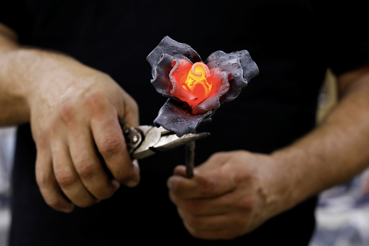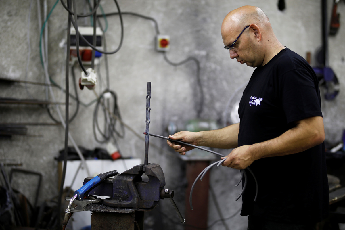 YATED, Israel (Reuters) - The clang of hammer on metal and the roar of a blowtorch can be heard long before you walk into Israeli metal sculptor Yaron Bob's workshop.