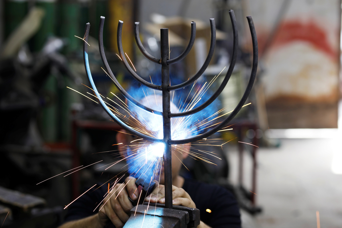 In the run-up to the Jewish holiday of Hanukkah, he was busy crafting a monumental hanukkiyah, a candlestick with nine branches that is used during the eight-day festival that starts this year at sundown on Sunday.