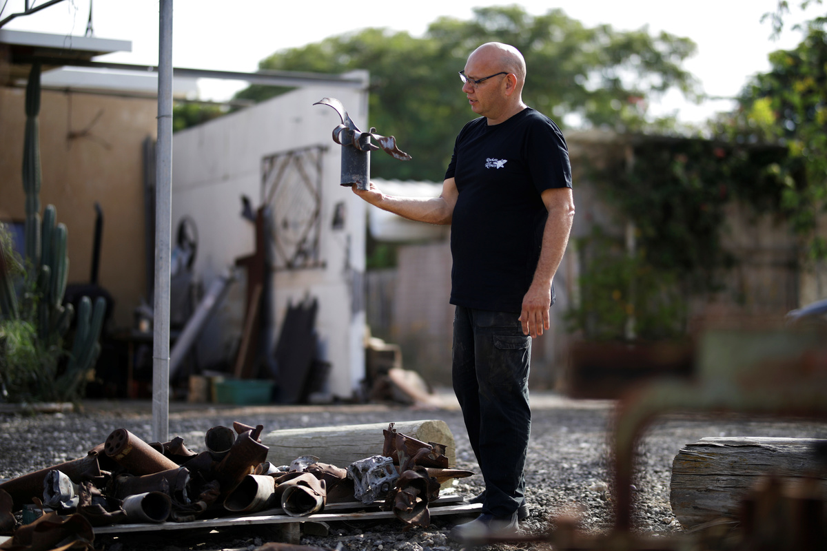 "When I'm taking the rockets and I cut them and I put them in the furnace and I'm working with them or with the blow torch and I'm working, I'm like destroying, annihilating the rockets. So, this is my therapy."