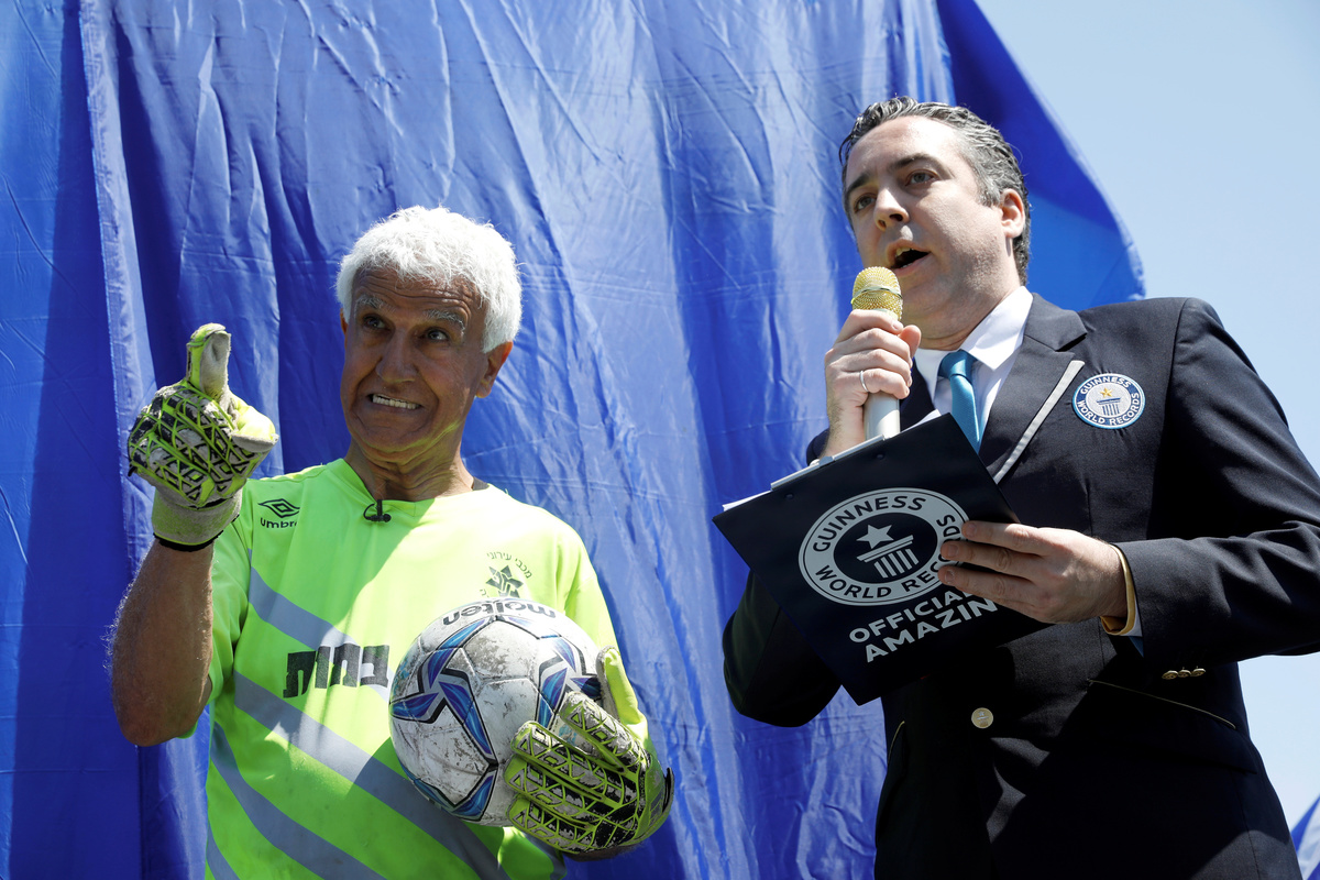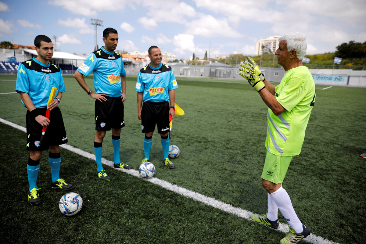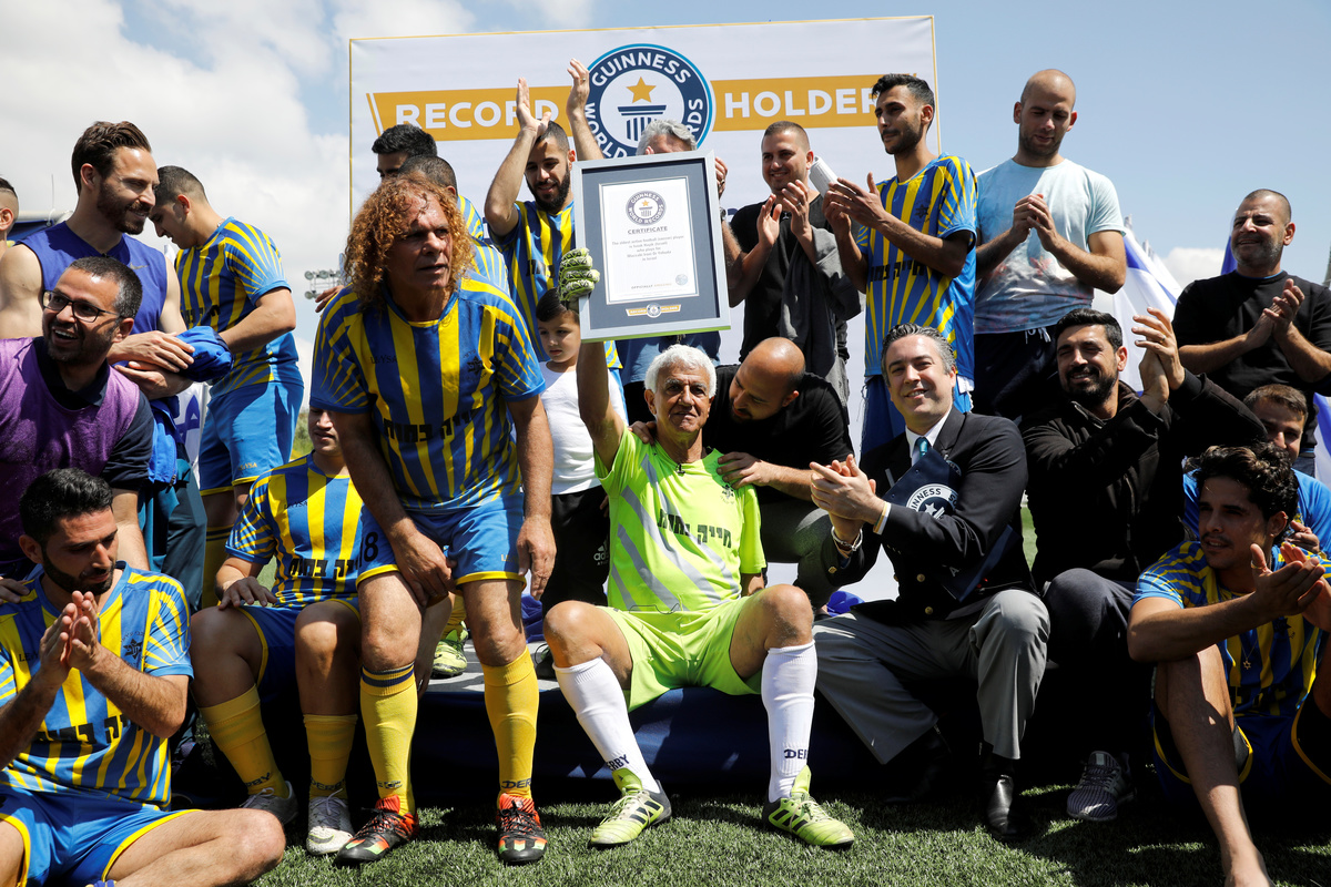 Isaak Hayik, 73, celebrates as he breaks the Guinness World Record for oldest living footballer in a game with Israel's Ironi Or Yehuda soccer club in Or Yehuda, Israel April 5, 2019. REUTERS/Amir CohenIsaak Hayik, 73 years old, breaks the Guinness World Record for oldest living football player while playing in a goalkeeper position in a game with Israel's Ironi Or Yehuda soccer club, in Or Yehuda, Israel April 5, 2019. REUTERS/Amir CohenIsaak Hayik, 73, plays as he breaks the Guinness World Record for oldest living footballer while playing in a goalkeeper position in a game with Israel's Ironi Or Yehuda soccer club in Or Yehuda, Israel April 5, 2019. REUTERS/Amir CohenIsaak Hayik, 73 year old, play as he breaks the Guinness World Record for oldest living footballer while playing in goalkeeper position in a game with Israel's Ironi Or Yehuda soccer club in Or Yehuda, Israel April 5, 2019. REUTERS/Amir CohenIsaak Hayik, 73, breaks the Guinness World Record for oldest living footballer while playing in a goalkeeper position in a game with Israel's Ironi Or Yehuda soccer club in Or Yehuda, Israel April 5, 2019. REUTERS/Amir CohenIsaak Hayik, 73 years old, breaks the Guinness World Record for oldest living football player while playing in a goalkeeper position in a game with Israel's Ironi Or Yehuda soccer club, in Or Yehuda, Israel April 5, 2019. REUTERS/Amir CohenIsaak Hayik, 73, breaks the Guinness World Record for oldest living footballer while playing in a goalkeeper position in a game with Israel's Ironi Or Yehuda soccer club in Or Yehuda, Israel April 5, 2019. REUTERS/Amir Cohen