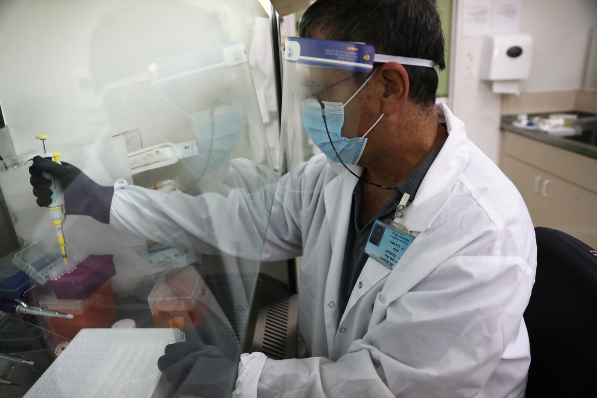 A doctor takes part in a demonstration for Reuters of ongoing clinical trials led by Sheba Medical Center and Israeli firm Newsight Imaging, in which they say a newly developed saliva test aims to determine in less than a second whether or not you are infected with the coronavirus disease (COVID-19), at Tel Hashomer in Ramat Gan, Israel August 13, 2020. REUTERS/Ammar Awad