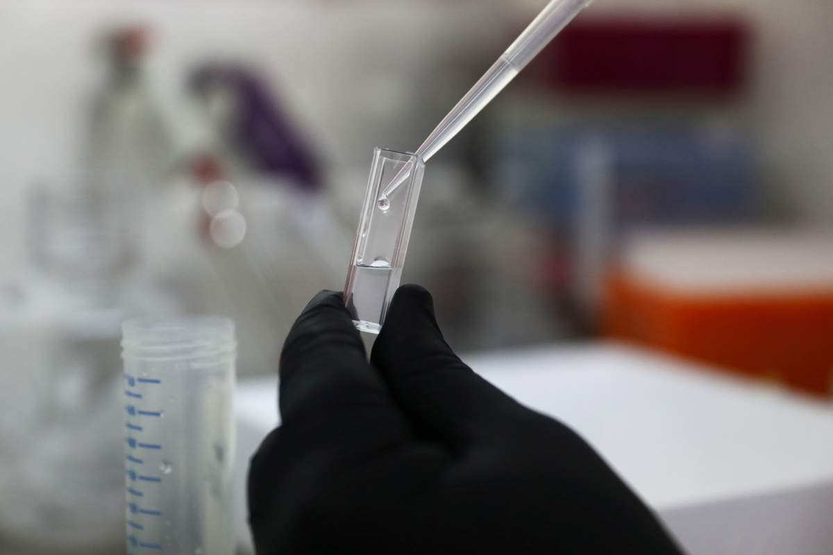 Patients rinse their mouth with a saline wash and spit into a vial. This is then examined by a small spectral device that, in simple terms, shines light on the specimen and analyses the reaction to see if it is consistent with COVID-19.