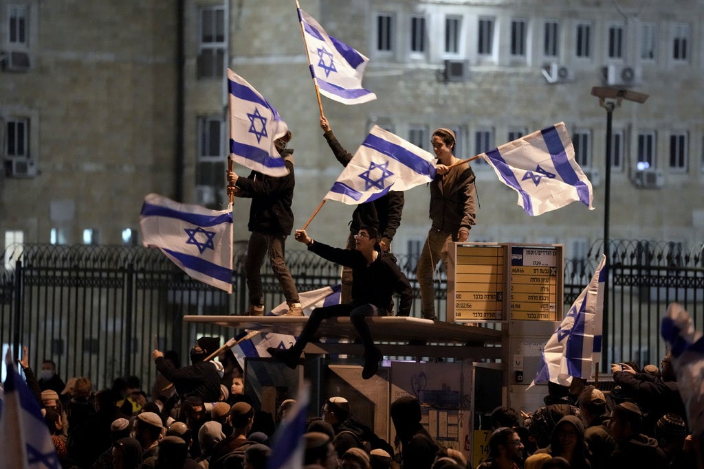 The protesters voiced opposition to the government's West Bank settlement policies, shouted chants against Prime Minister Naftali Bennett and waved Israeli flags.