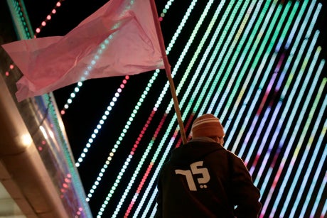 In a statement, police said hundreds of protesters took part in the demonstration. They accused some protesters of unruly behavior, including throwing objects and trying to break through a police barricade. It said one officer was lightly hurt, and several protesters were arrested.