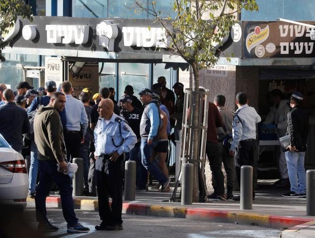 Israeli police say that a security guard has been stabbed near Jerusalem's central bus station.