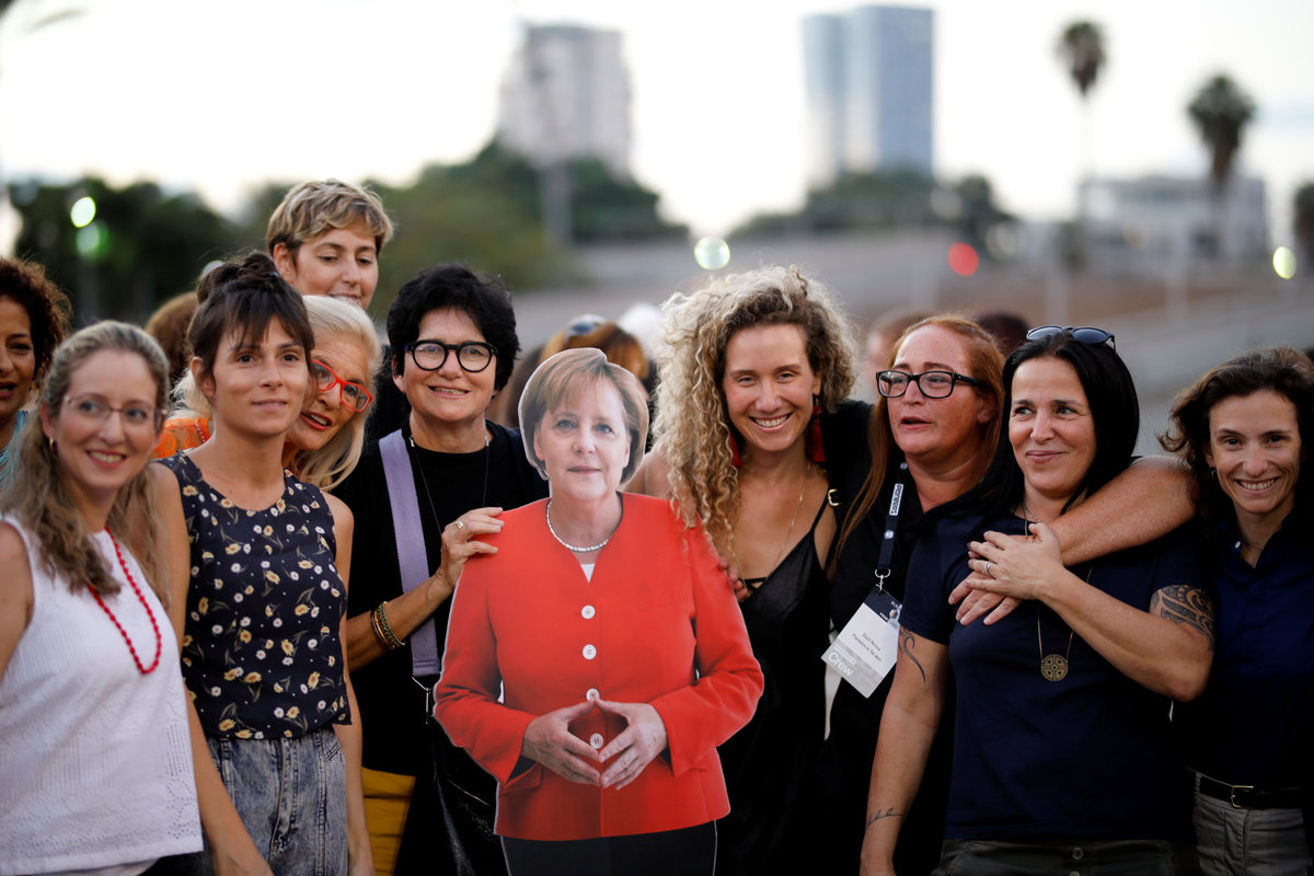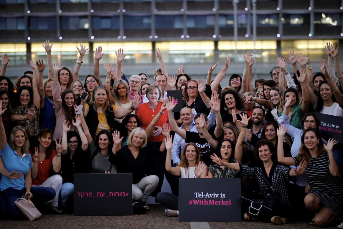 That was also the message the protesters said they wanted to get across at Rabin Square, where more than 50 women posed for photographers and TV cameras with a few placards, one of which read: "Tel Aviv is with Merkel".