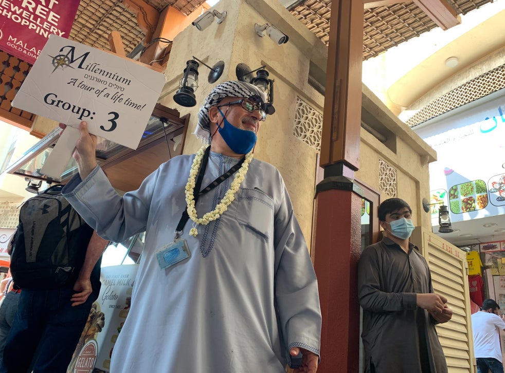 “I’m a Muslim Palestinian guiding Israeli Jews,” he said with a laugh, standing on the sidewalk with his tour sign held overhead, preparing to lead the way into the narrow lanes of the spice market. “That is a very Dubai thing.”