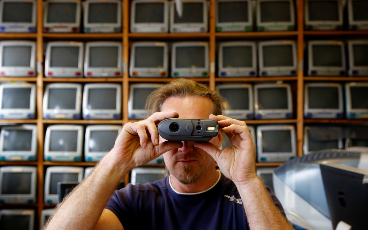 Austrian Apple computer collector Roland Borsky holds the iCamera in his office in Vienna, Austria September 28, 2018. Picture taken September 28, 2018. REUTERS/Leonhard Foeger