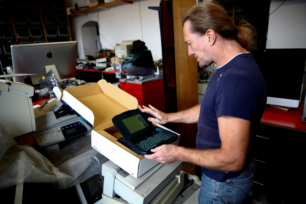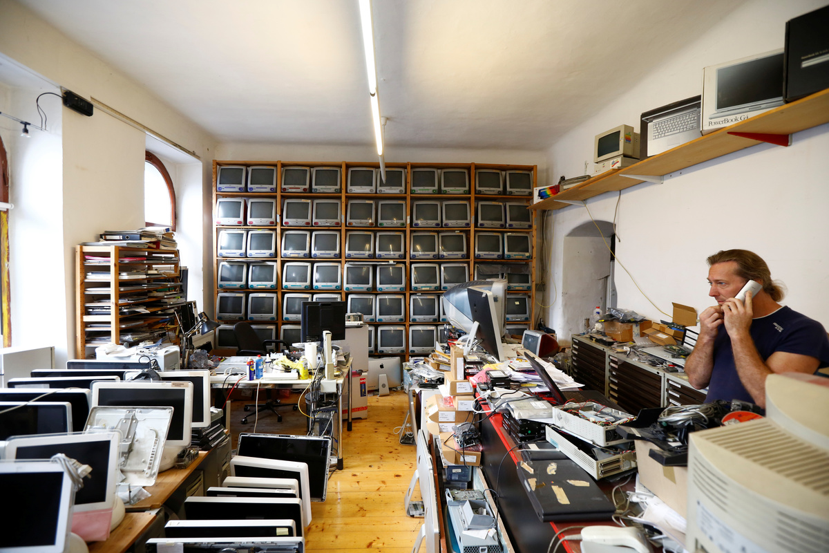 Macintosh SE computers sit in the storage of Austrian Apple computer collector Roland Borsky in Korneuburg, Austria September 27, 2018. Picture taken September 27, 2018. REUTERS/Leonhard FoegerApple computers sit on the shelves in the storage of Austrian Apple computer collector Roland Borsky in Korneuburg, Austria September 27, 2018. Picture taken September 27, 2018. REUTERS/Leonhard FoegerPower Macs sit on the shelves in the office of Austrian Apple computer collector Roland Borsky in Vienna, Austria September 28, 2018. REUTERS/Leonhard FoegerAustrian Apple computer collector Roland Borsky talks in his office in Vienna, Austria October 3, 2018. REUTERS/Leonhard FoegerComputer cables are seen in the storage of Austrian Apple computer collector Roland Borsky in Korneuburg, Austria September 27, 2018. REUTERS/Leonhard FoegerApple computers sit on the shelves in the storage of Austrian Apple computer collector Roland Borsky in Korneuburg, Austria September 27, 2018. REUTERS/Leonhard FoegerApple computers are seen in the storage of Austrian Apple computer collector Roland Borsky in Korneuburg, Austria September 27, 2018. REUTERS/Leonhard FoegerAustrian Apple computer collector Roland Borsky writes on a Newton personal digital assistant in his office in Vienna, Austria September 28, 2018. REUTERS/Leonhard FoegerAn Apple cable is seen in the office of Austrian Apple computer collector Roland Borsky in Vienna, Austria October 3, 2018. REUTERS/Leonhard FoegerA Macbook is seen in the office of Austrian Apple computer collector Roland Borsky in Vienna, Austria October 3, 2018. REUTERS/Leonhard FoegerA sign reading "Coming soon" is seen in the office of Austrian Apple computer collector Roland Borsky in Vienna, Austria October 3, 2018. REUTERS/Leonhard FoegerPower Macs are seen in the office of Austrian Apple computer collector Roland Borsky in Vienna, Austria October 3, 2018. REUTERS/Leonhard FoegerApple computers sit on the shelves in the storage of Austrian Apple computer collector Roland Borsky in Korneuburg, Austria September 27, 2018. REUTERS/Leonhard FoegerToner cartridges of Apple computers are seen in the storage of Austrian Apple computer collector Roland Borsky in Korneuburg, Austria September 27, 2018. REUTERS/Leonhard FoegerKeyboards of Apple computers are seen in the storage of Austrian Apple computer collector Roland Borsky in Korneuburg, Austria September 27, 2018. REUTERS/Leonhard FoegerApple computers sit in the storage of Austrian Apple computer collector Roland Borsky in Korneuburg, Austria September 27, 2018. REUTERS/Leonhard FoegerAustrian Apple computer collector Roland Borsky makes a phone call in his office in Vienna, Austria September 28, 2018. REUTERS/Leonhard FoegerAustrian Apple computer collector Roland Borsky stands in his office in Vienna, Austria September 28, 2018. REUTERS/Leonhard FoegerMacintosh SE computers are seen in the office of Austrian Apple computer collector Roland Borsky in Vienna, Austria October 3, 2018. REUTERS/Leonhard FoegerAustrian Apple computer collector Roland Borsky displays an eMate 300 in his office in Vienna, Austria September 28, 2018. REUTERS/Leonhard Foeger