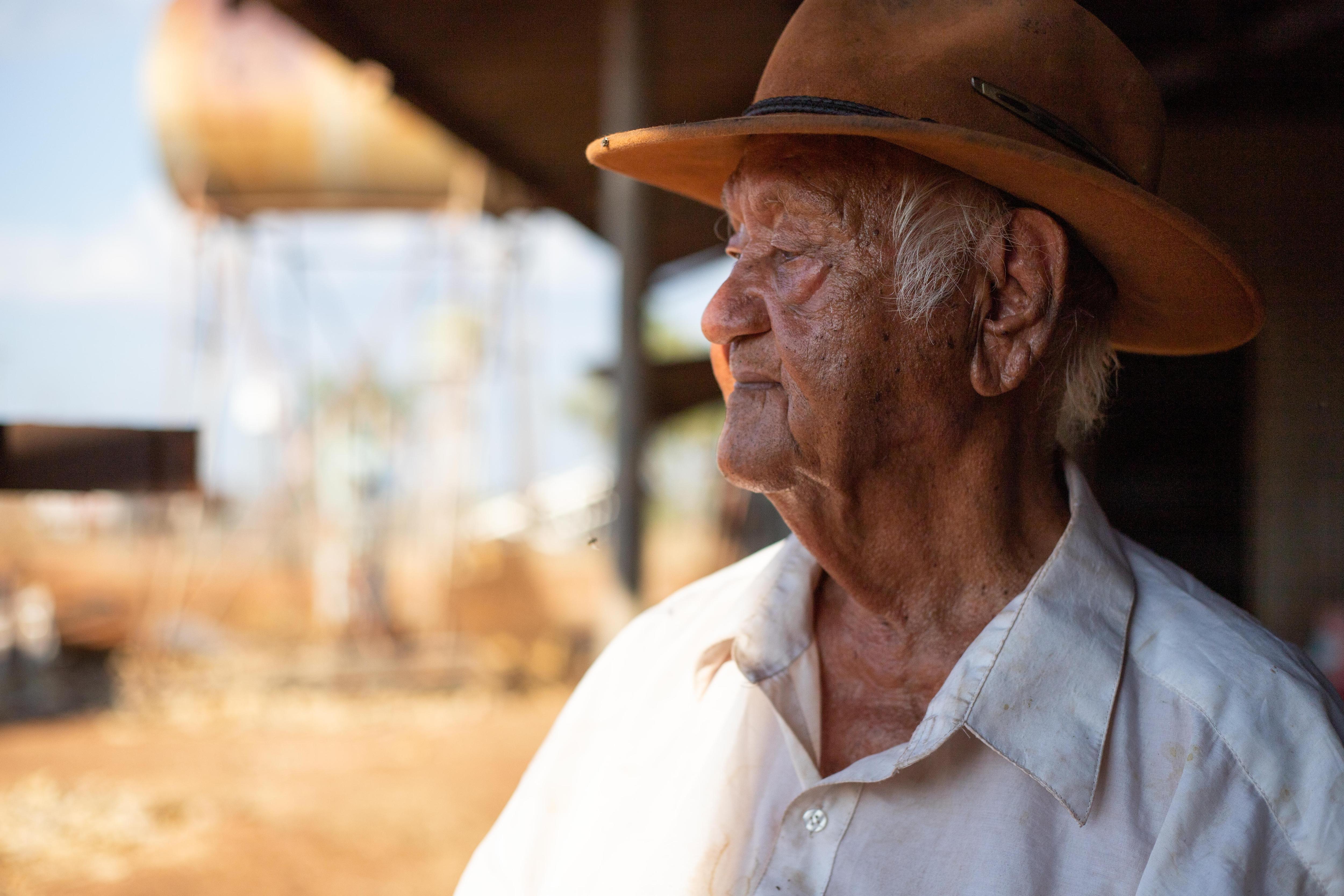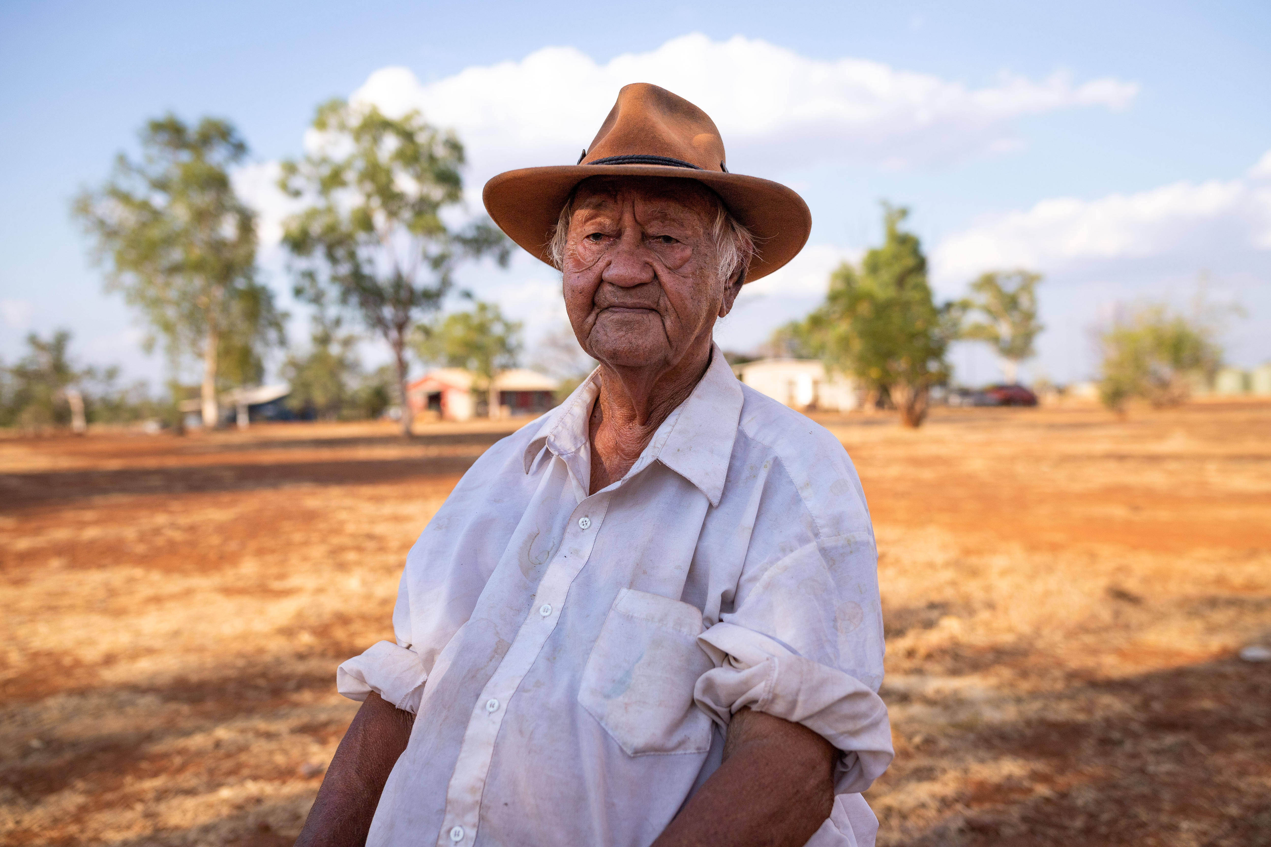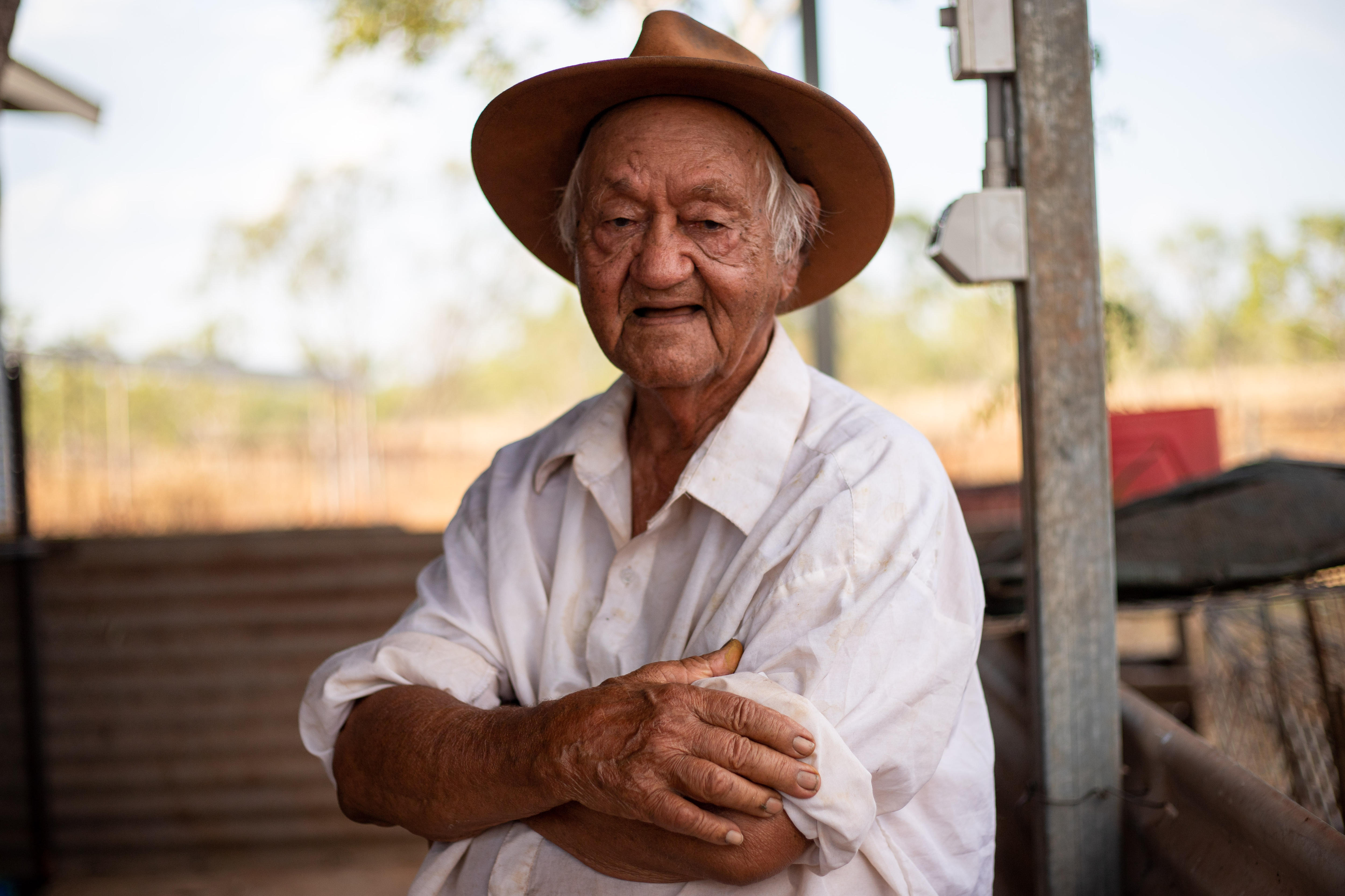 The 90-year-old Wardaman elder grew up on Willeroo Station, 120 kilometres south-west of Katherine, where he was put to work at a young age in the stock camps of the Vestey family's pastoral company.
