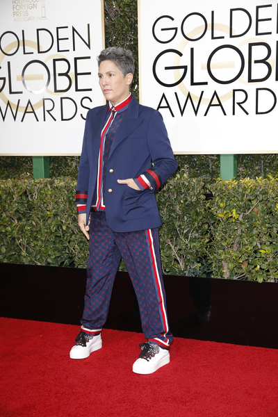 The nods to inclusion kicked off with the show's opening musical number, a buoyant takeoff on "La La Land" in which "The People v. O.J. Simpson" stars Sarah Paulson and Sterling K. Brown rhymed the line "Golden Globes will be given out tonight" with the line "Not all the nominees are white."