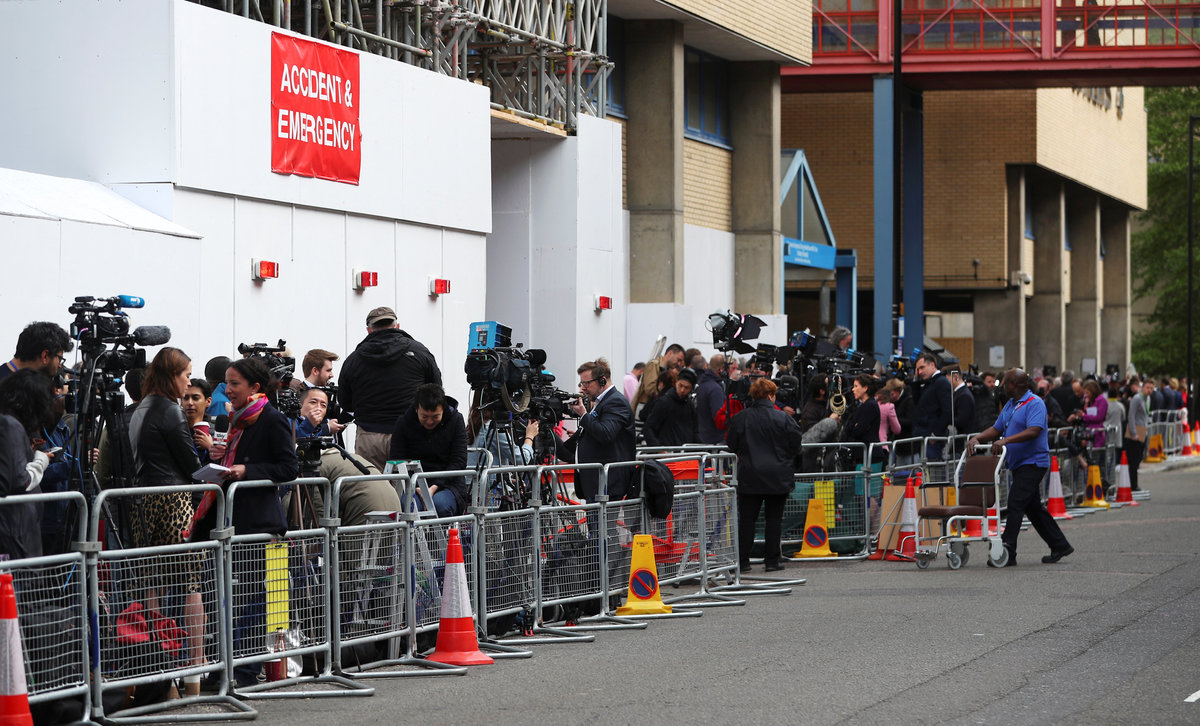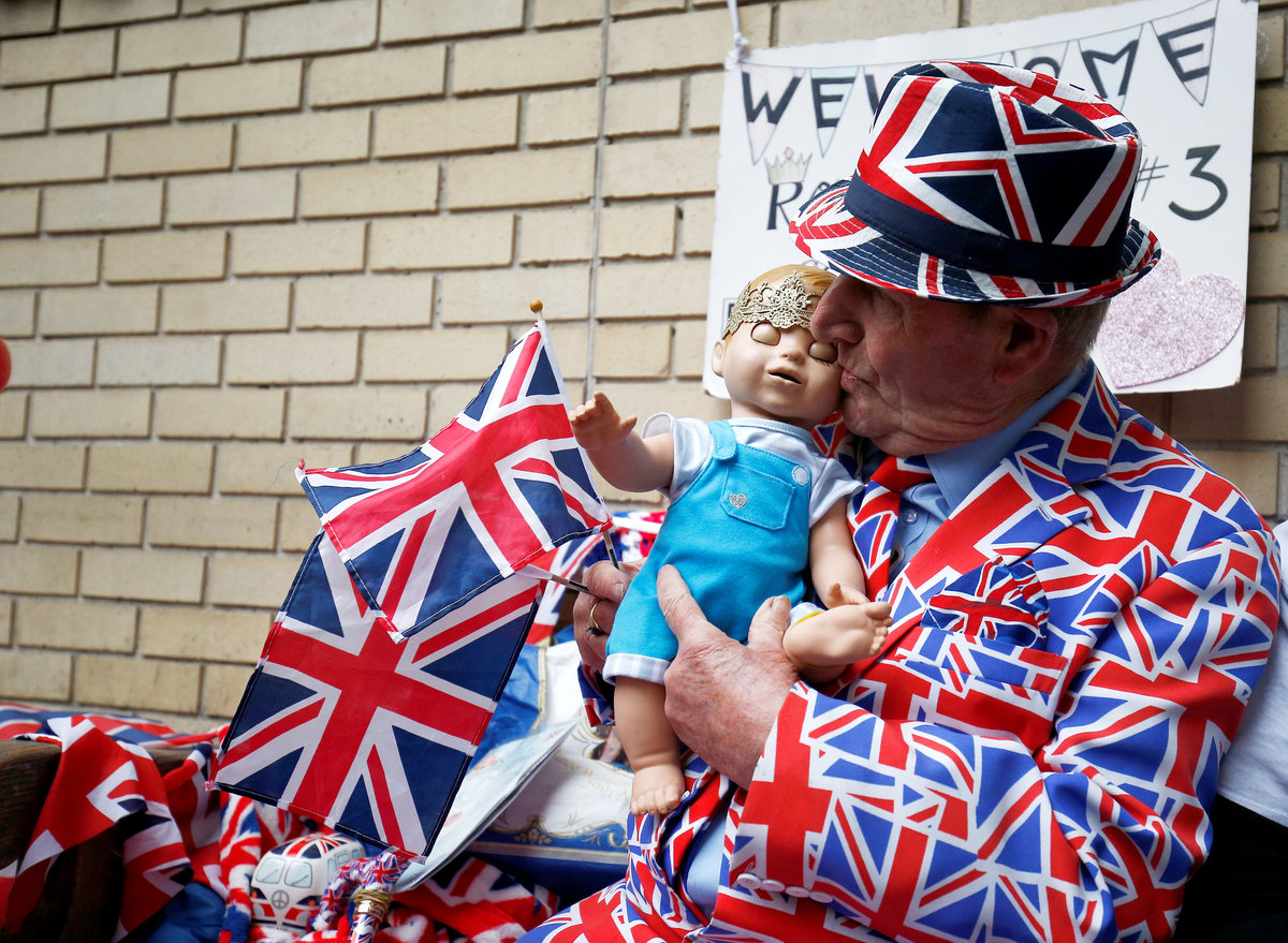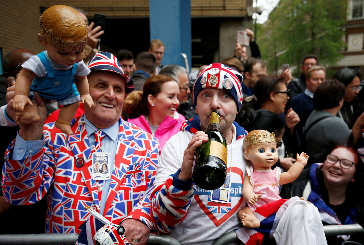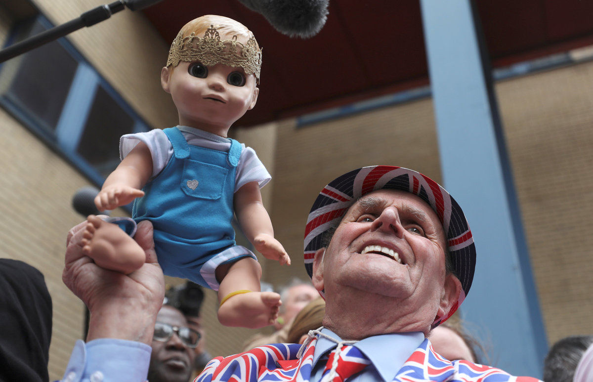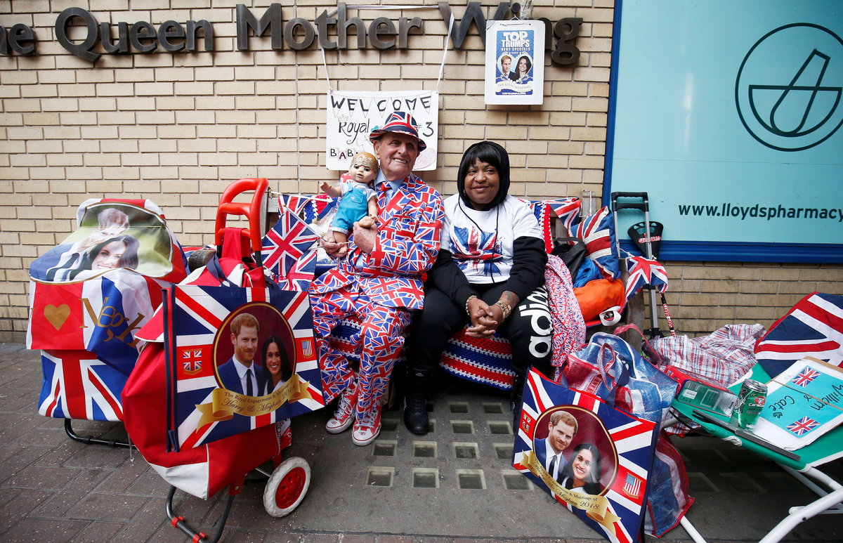 "We've been coming out doing this for 21 years," said John Loughrey, 63, from south London, who was wearing a Union Jack onesie and hat and holding a baby doll adorned with a crown. He said he had been camped outside the hospital for 15 days.