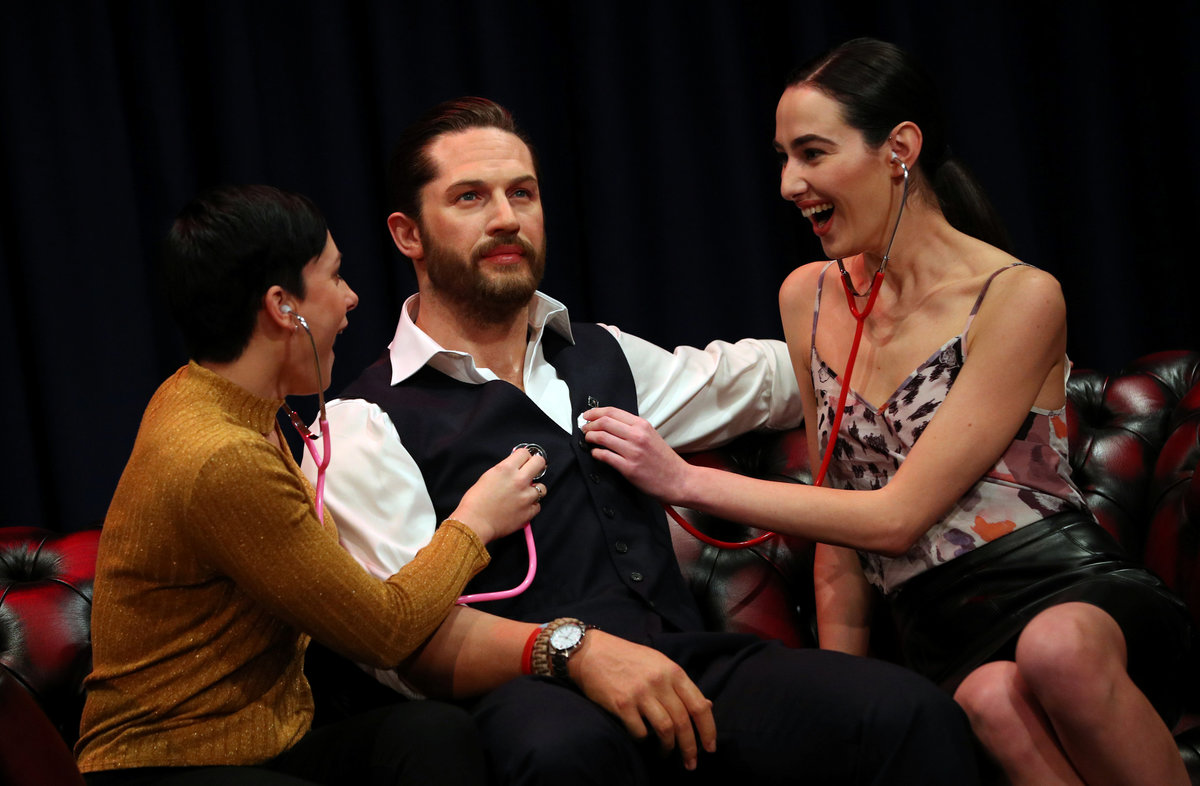 People pose next to Madame Tussauds' wax figure of British actor Tom Hardy which has a soft warm chest and a beating heart, in London, Britain, February 8, 2018. REUTERS/Hannah McKayPeople pose next to Madame Tussauds' wax figure of British actor Tom Hardy which has a soft warm chest and a beating heart, in London, Britain, February 8, 2018. REUTERS/Hannah McKayPeople pose next to Madame Tussauds' wax figure of British actor Tom Hardy which has a soft warm chest and a beating heart, in London, Britain, February 8, 2018. REUTERS/Hannah McKayA woman poses next to Madame Tussauds' wax figure of British actor Tom Hardy which has a soft warm chest and a beating heart, in London, Britain, February 8, 2018. REUTERS/Hannah McKay