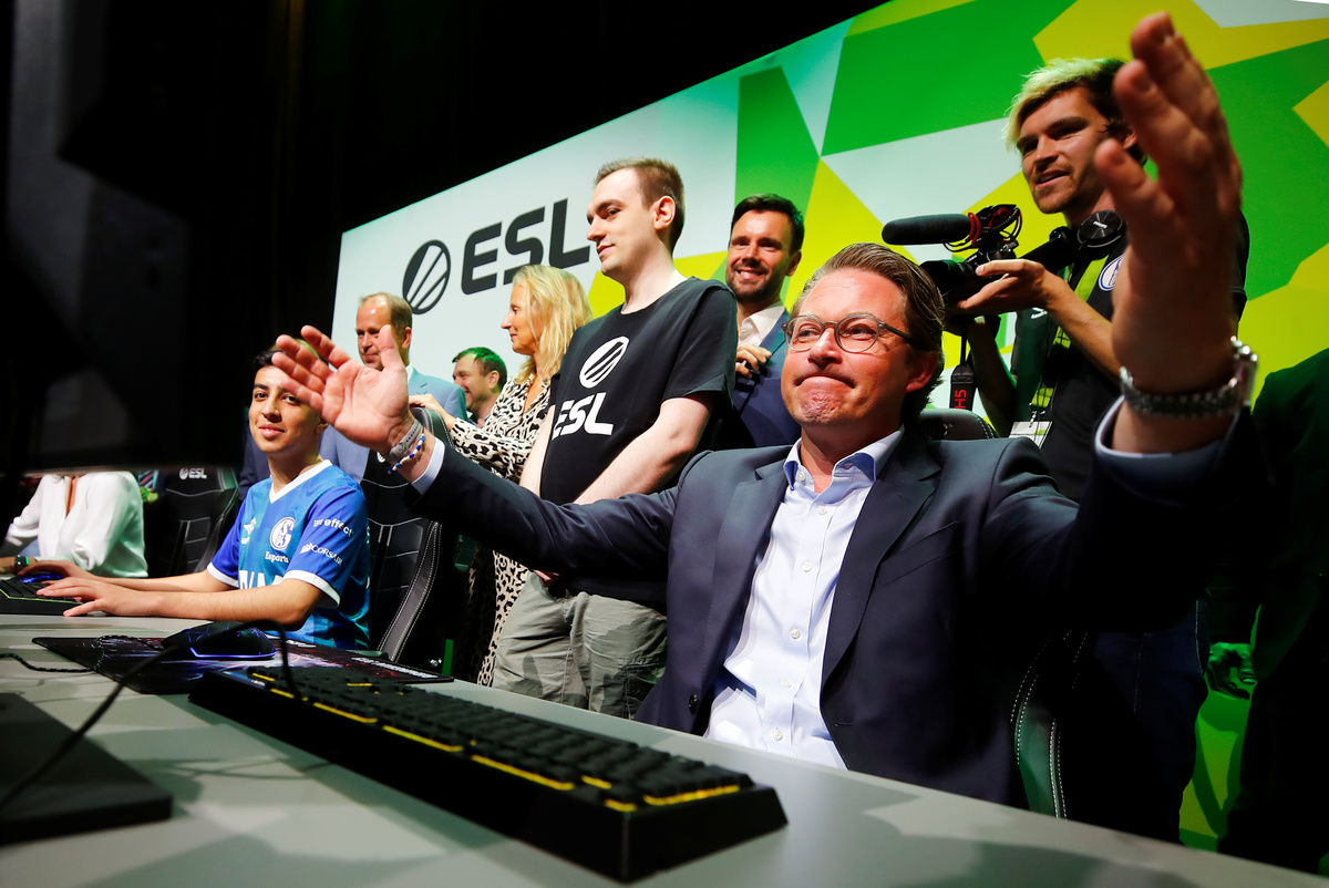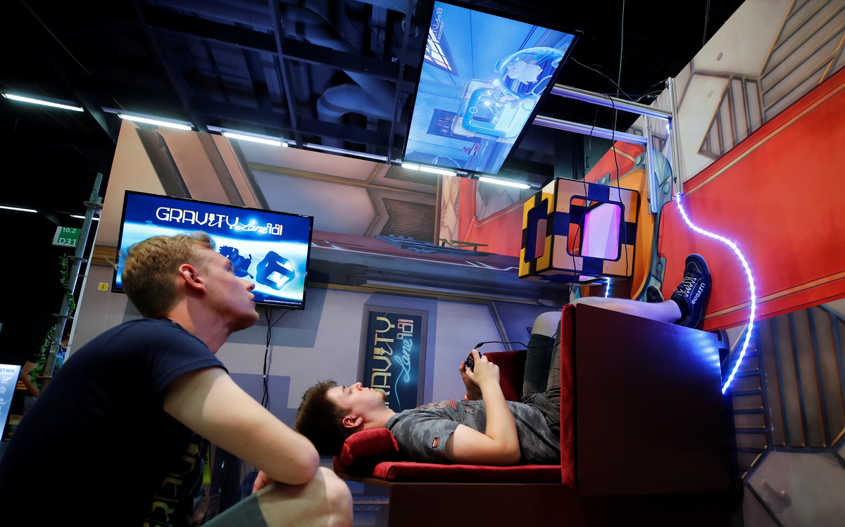 Mayor of Cologne Henriette Reker, German Minister of Transport and Digital Infrastructure Andreas Scheuer and German Minister of State for Digitalisation Dorothee Baer play an E-soccer game during the media day of Europe's leading digital games fair Gamescom, which showcases the latest trends of the computer gaming scene in Cologne, Germany, August 20, 2019. REUTERS/Wolfgang RattayA gamer plays Gravity in a chair hung on the wall during the media day of Europe's leading digital games fair Gamescom, which showcases the latest trends of the computer gaming scene, in Cologne, Germany, August 20, 2019. REUTERS/Wolfgang RattayAndreas Scheuer, German Minister of Transport and Digital Infrastructure, reacts after loosing against a professional player of Schalke 04 E-sports team during the media day of Gamescom in Cologne, Germany August 20, 2019. REUTERS/Wolfgang RattayA gamer plays the car racing game Forza Motorsport 7 during the media day of Europe's leading digital games fair Gamescom, which showcases the latest trends of the computer gaming scene, in Cologne, Germany, August 20, 2019. REUTERS/Wolfgang RattayA gamer grabs for a virtual book from an empty shelf as he wears augmented reality goggles during the media day of Europe's leading digital games fair Gamescom, which showcases the latest trends of the computer gaming scene, in Cologne, Germany, August 20, 2019. REUTERS/Wolfgang RattayA gamer is silhouetted against an illuminated wall with the logo of the Electronic Sports League ESL during the media day of Europe's leading digital games fair Gamescom, which showcases the latest trends of the computer gaming scene, in Cologne, Germany, August 20, 2019. REUTERS/Wolfgang Rattay