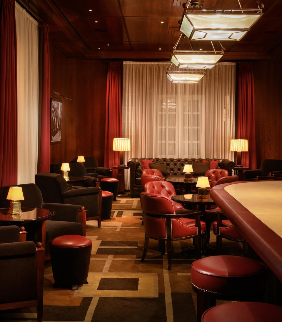 Meanwhile, the old bar area has now been turned into the lounge, renamed The Gatsby Room, and offers all-day dining and afternoon tea, the latter given a transatlantic twist. (Think: Reuben Salt Beef, Smoked Chicken Caesar and Devilled Egg sandwiches and sweet treats such as Boston Cream Pie, Peanut Butter & Jelly Chocolate Macaroons and Key Lime & Macha Religieuse). Red walls, velvet tub chairs and large-scale oil paintings give the space an elegance, added to by the resident pianist who tickles the ivories of the baby grand. Back-lit bookshelves and an original fireplace add to the cocooning feel (check out the secret door behind one of bookcases, to lead you to the lifts). Meanwhile, a new terrace area, with 20s-style rattan chairs, also gives another option for dining – this time al fresco – with drinks and ‘bites’ on offer.