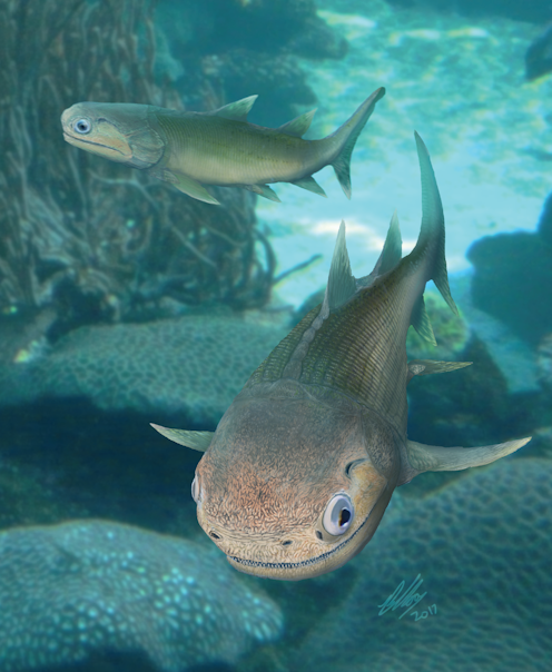The scans revealed a perplexing mixture of characters in the skulls of these fish. Some features, like the shape of the inner ear canals, seemed to belong to cartilaginous fishes such as sharks. Other features, like the overall shape of the brain case, were clearly osteichthyan (bony fish) characters.