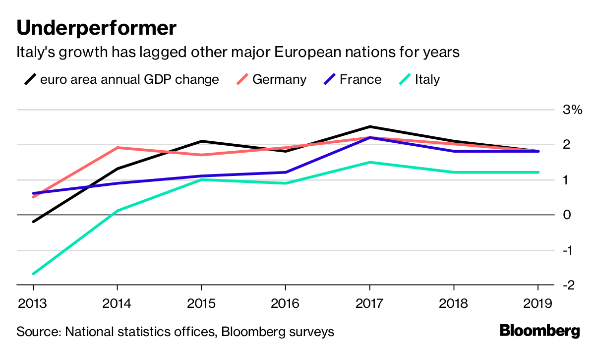 Major Challenges: All that costs money, and the euro area’s slowest growing economy already has a debt-to-GDP ratio of more than 130 percent, second only to Greece. Failure to rein that in means nervous investors and rising borrowing costs. The summer has been dominated by concerns over the country’s budget, with sovereign yields fluctuating on everything from government comments on the deficit to speculative reports on Donald Trump agreeing to buy Italian debt.