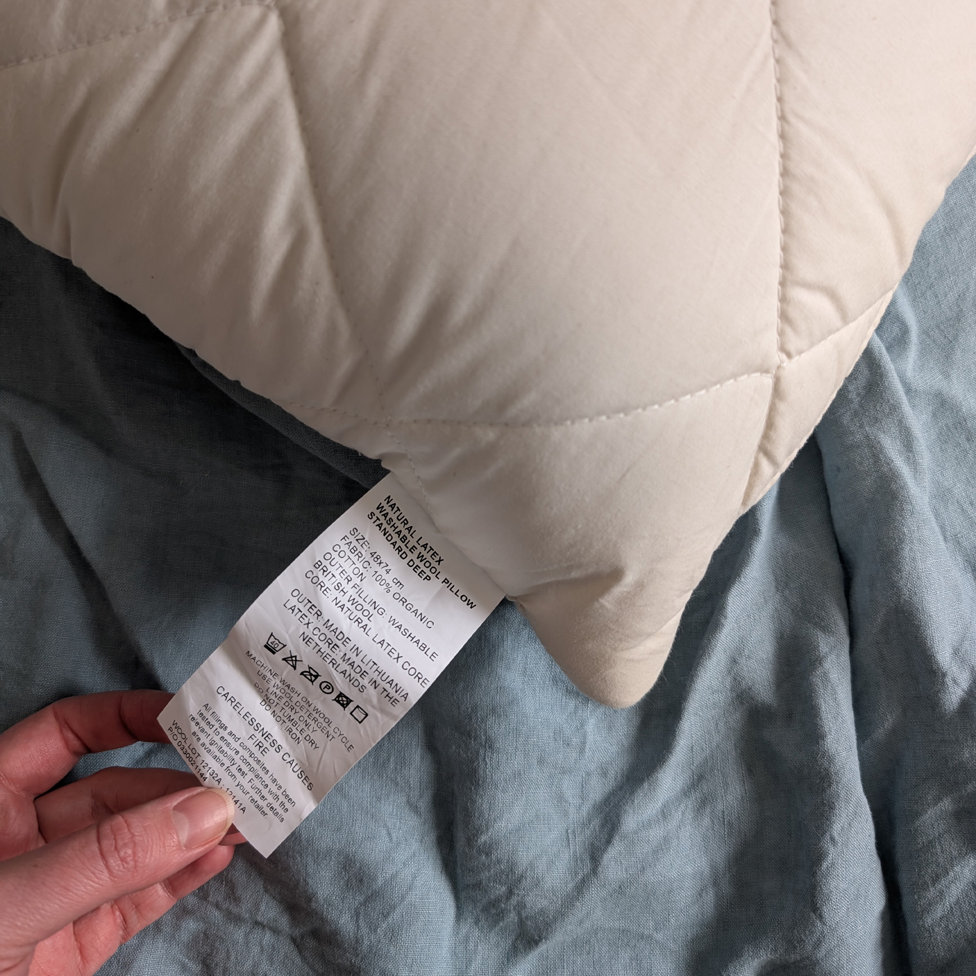 The Woolroom Natural Latex Washable Wool Pillow turns out to be the absolute Goldilocks of pillows for me. It's not too low, and not too high. I'm 5'10" with fairly wide shoulders and I sleep on a medium-firm mattress. I tested the 18cm deep pillow (there is also a 15cm deep alternative) and found it fitted my shoulder width and mattress type perfectly.