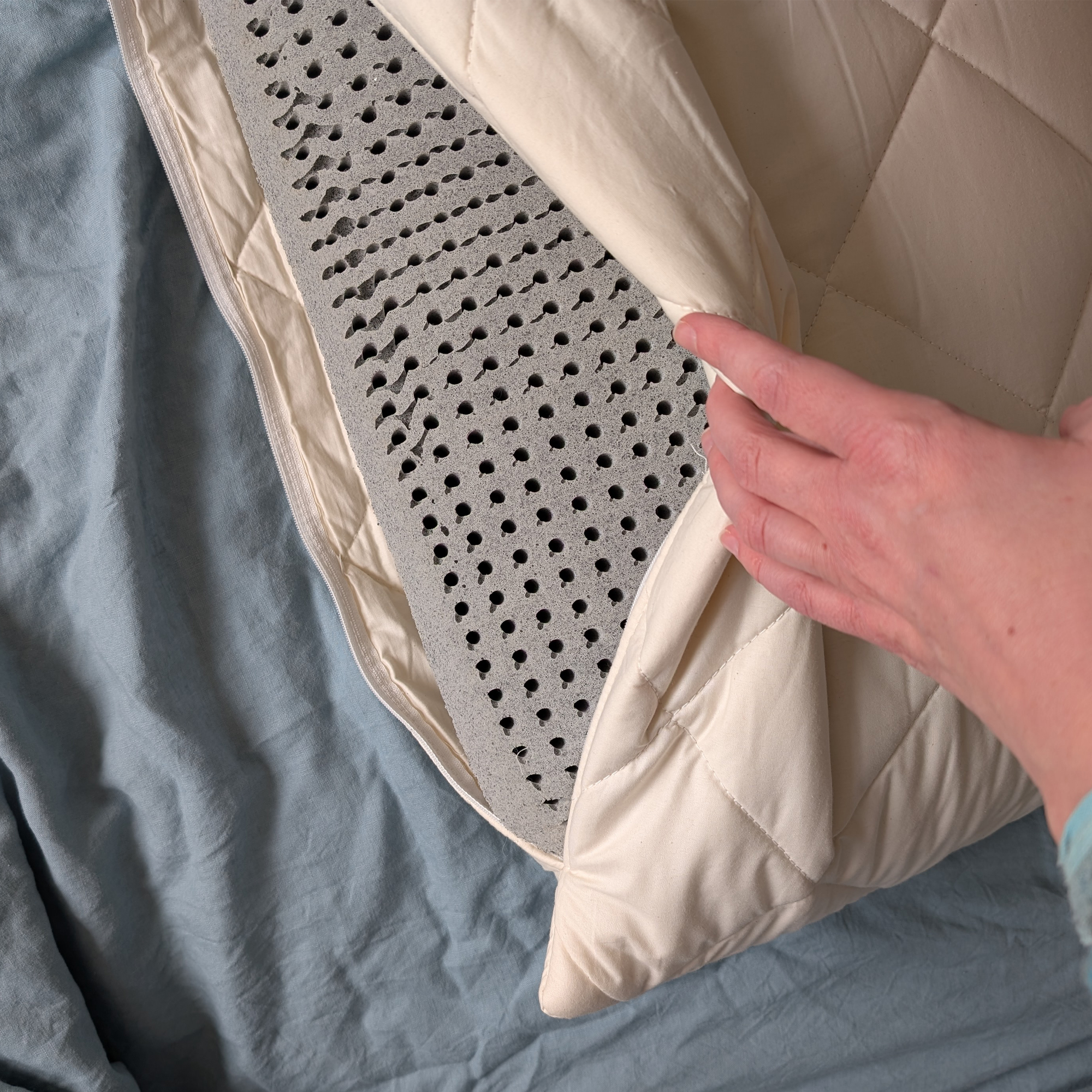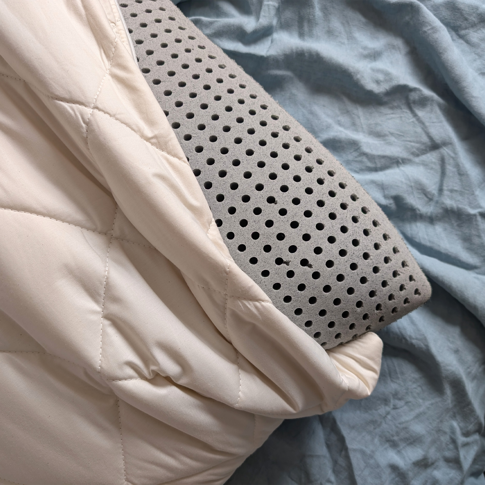 Lying on my side, my head felt supported at just the right height, but what I particularly loved was the feel of the latex core. I've tested foam pillows for side sleeping, such as the Levitex Sleep Posture Pillow, which did a brilliant job of supporting my head at the right height but felt very firm and 'block-like' under my head.
