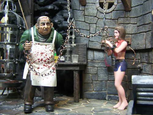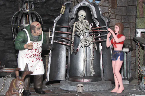 Rob Mattison, whose Monster Model Review site features nine videos on Monster Scenes alone, has long been one of the Monster Scenes’ biggest champions, but even he is flummoxed by Aurora’s original concept. “What 10-year-old wants to have a doctor putting a girl into a hanging cage?” he wonders. “There were a bunch of adult men sitting around thinking — and this is what they came up with?”