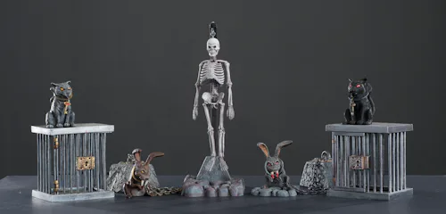Prince even created and sold new kits: Saber Tooth Rabbit, Feral Cat, and a glow-in-the-dark Skeleton. In 2010, he began collaborating on the Monster Scenes book with Andrew Yanchus, which they launched four years later at Wonderfest. Meanwhile, monster kid Cortlandt Hull, 68, was so inspired by Aurora’s models, he created the Witch’s Dungeon classic-monster museum in Bristol, Connecticut, and co-directed The Aurora Models documentary, which features a section on Monster Scenes.