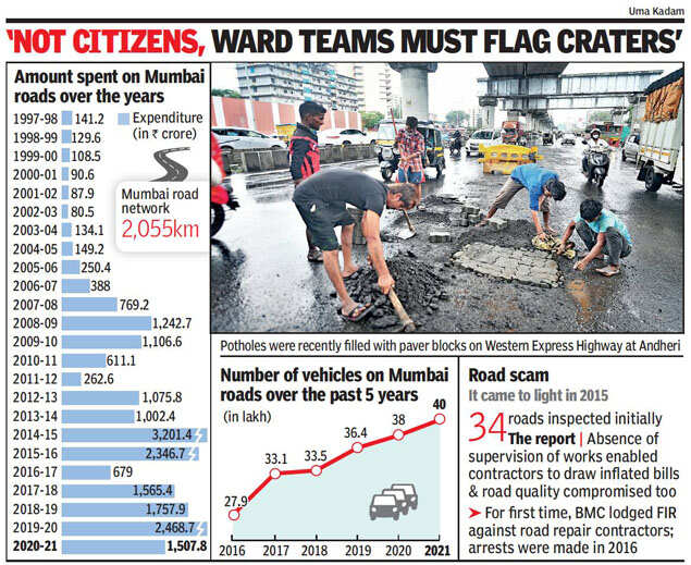 Taking note of TOI’s July 27 report on potholes, Andheri MLA Ameet Satam said this January, the BMC said its road department had spent more than Rs 21,000 crore since 1997, in reply given to his RTI plea seeking details about it.