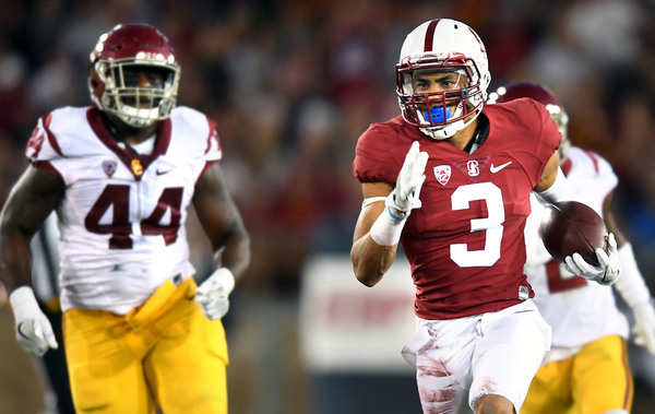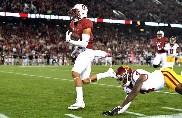 Quarterback Ryan Burns faked a handoff to McCaffrey. USC's defense collapsed on him, as if magnetized. Burns then handed to receiver Michael Rector on an end around, and he went 56 yards almost untouched down the sideline to put Stanford up, 27-10.