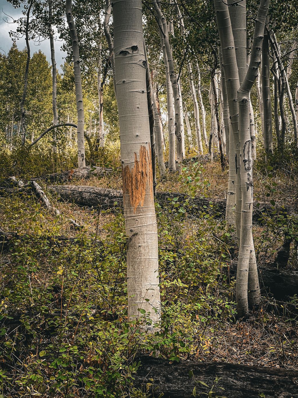 Then, in a prophetic situation that’s not unlike what would occur a few weeks later—foreshadowing—I stopped in this elk bedding area to regroup and have a snack. And that’s when I heard something crashing through the trees to my right.