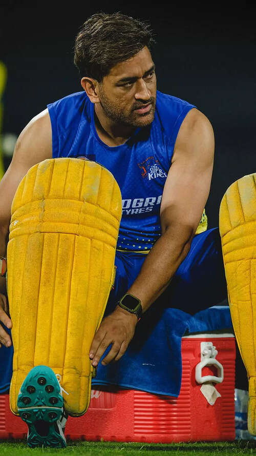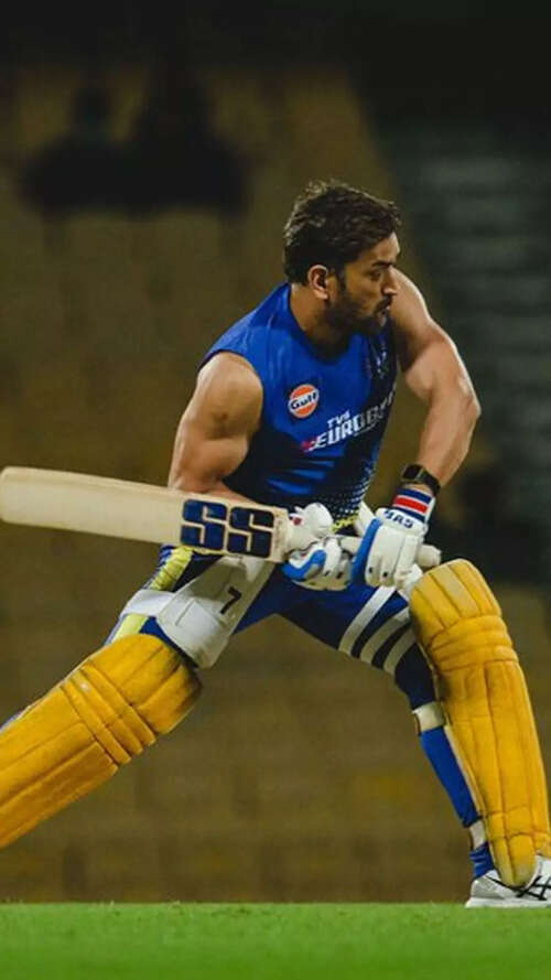 <p>CSK’s skipper Dhoni was seen padding-up for his turn in the nets at the Chepauk stadium.<br /></p>8/10:Dhoni flexes his biceps to smash the ball