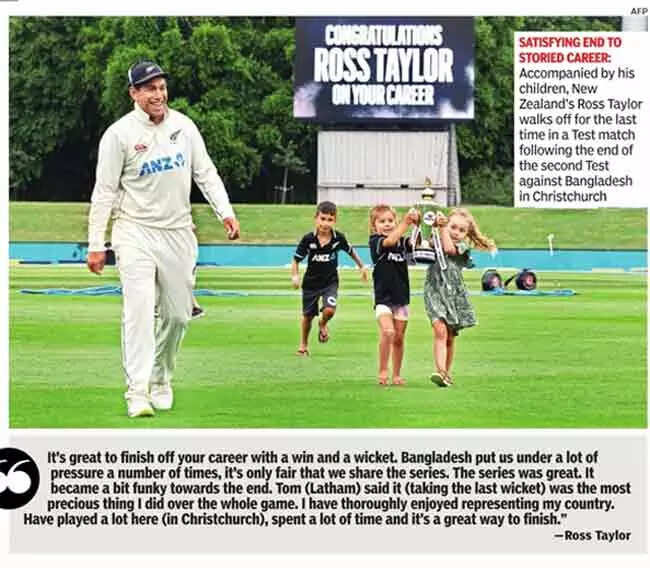 CHRISTCHURCH: A wicket with the final delivery of his Test career along with a series-levelling win over Bangladesh, veteran New Zealand batter Ross Taylor couldn't have asked for a more befitting farewell after a 15-year-long journey in red-ball cricket and the star agreed it was "great".