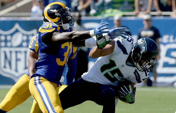 But the Rams kept the Seahawks out of the end zone. Steven Hauschka's 23-yard field goal tied the score early in the second quarter.