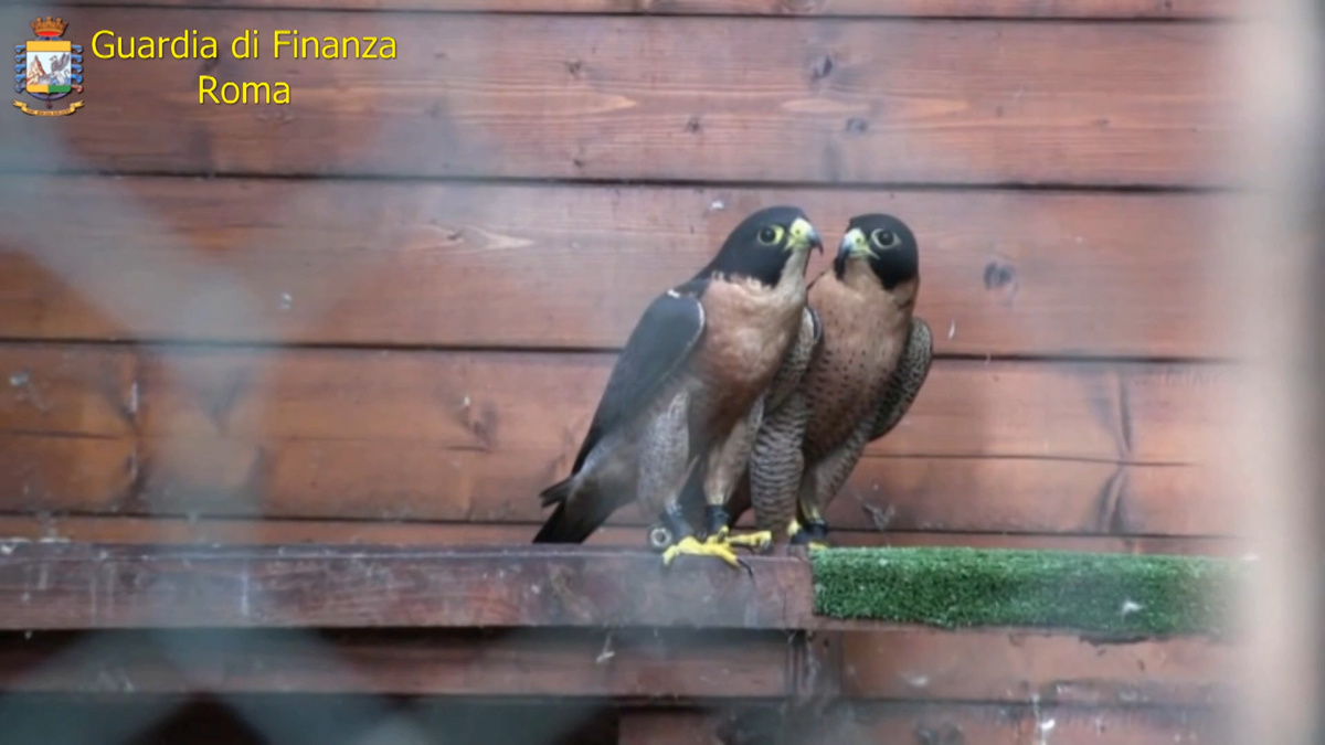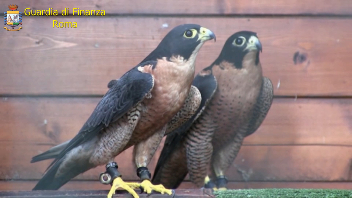 The pair of two-year-old falcons, probably captured in their natural habitat, were now in a safe place chosen by Italian magistrates, the police said.