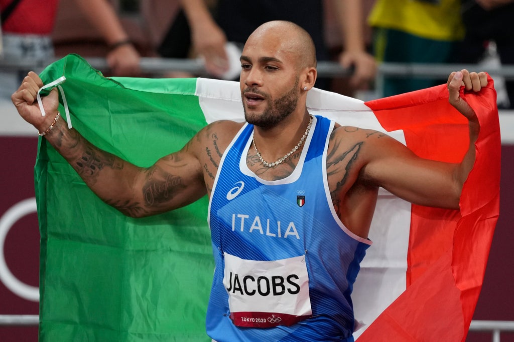 Lamont Marcell Jacobs won the men's Olympic 100-meter race Sunday night, crossing the line in 9.8 seconds to bring the sprint gold to Italy for the first time.