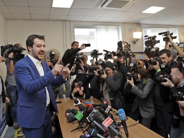 Italians woke up to a new parliamentary setup that delivered no clear governing majority, but stunning victories for Luigi Di Maio’s anti-establishment Five Star Movement, which comes out as Italy’s biggest party with over 32 per cent of the vote, and Matteo Salvini’s populist Northern League, which is now the leading party of the biggest coalition - the centre-right – which boasts 38 per cent between its members. Matteo Renzi’s centre-left Democratic Party, with 19 per cent, is the evident loser, with its leader now seemingly certain to resign.