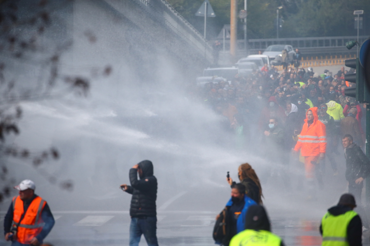 "They attacked us. I am speechless. I never expected it," said Stefano Puzzer, the spokesman of the port protesters. "We will sit down here. We are keeping calm. We will not give up."