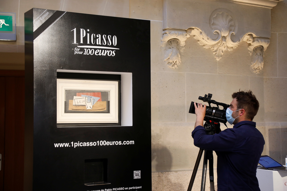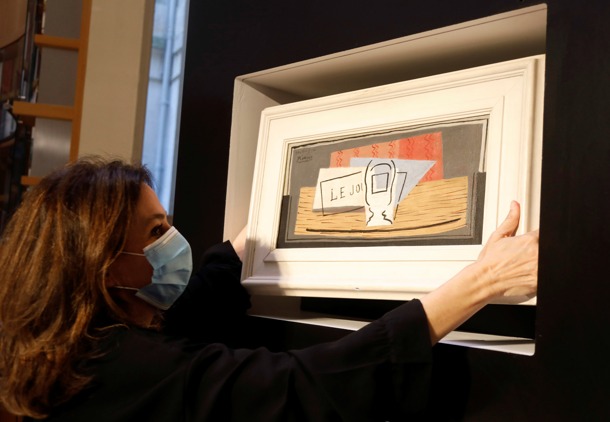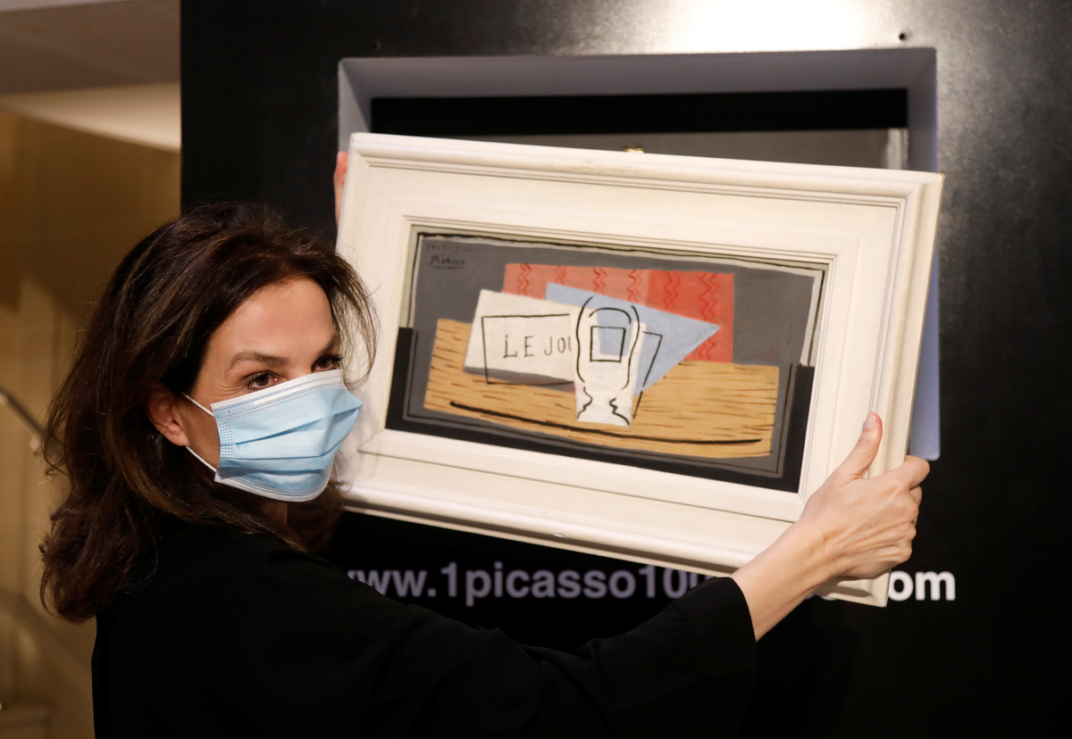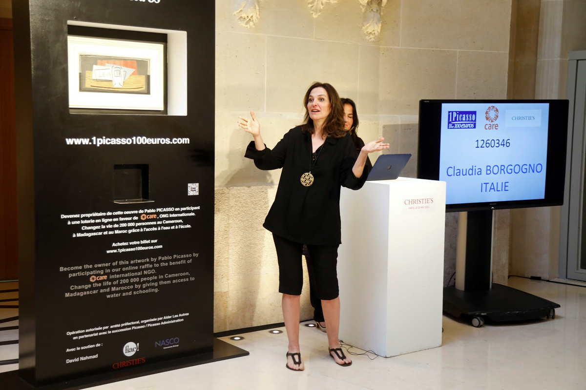 The winner - who received her lottery ticket as a gift - will acquire the Spanish master's 1921 oil-on-canvas still life "Nature morte", a small abstract representing a table, newspapers and a glass of absinth.