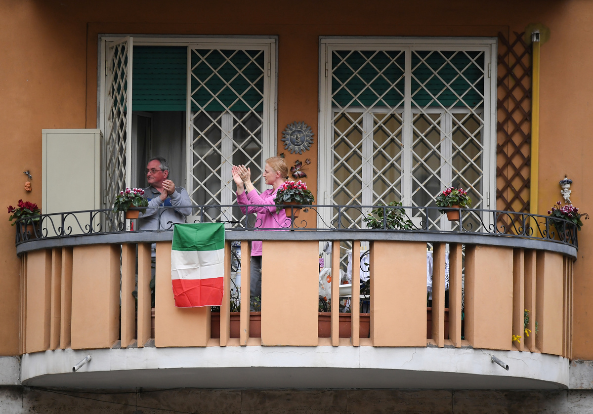 On Saturday at noon, many people across the country went onto their balconies to offer a round of applause to the doctors and nurses working on the frontlines of the crisis.