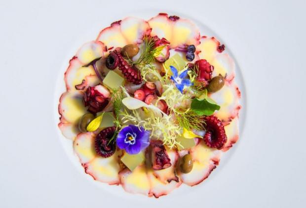 Next up is another Acqua signature: sous vide cooked octopus salad, marinated in extra virgin olive oil, lemon and vinegar, fennel leaves, celery and Taggiasche olives DOP (600 baht if ordered à la cart). "Most of my food is from memories like the octopus," says chef Frau. "My father used to fish for octopus and taught me how to fish for it. I even sold octopus to make pocket money while I was in school." Bold and fresh, you can almost taste the sea in the dish, and it is not hard to see why it is a signature.