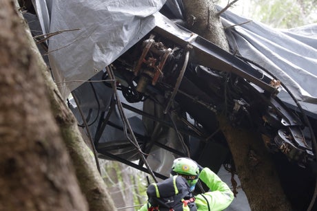 Fourteen people were killed when the lead cable of the Mottarone funicular overlooking Lake Maggiore in northern Italy snapped and the emergency brake failed to prevent the cable car from reeling backward down the support line. The cable car pulled off the line entirely when it hit a support pylon, crashed to the ground and then rolled down the mountain until it was stopped by a stand of trees.