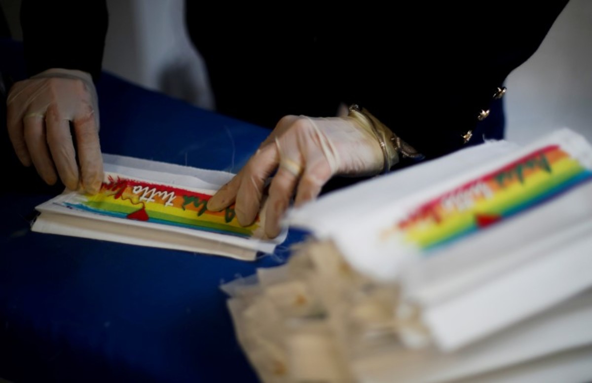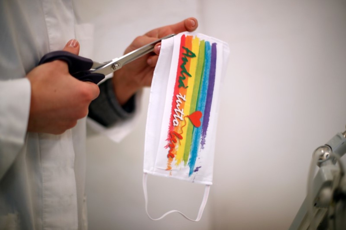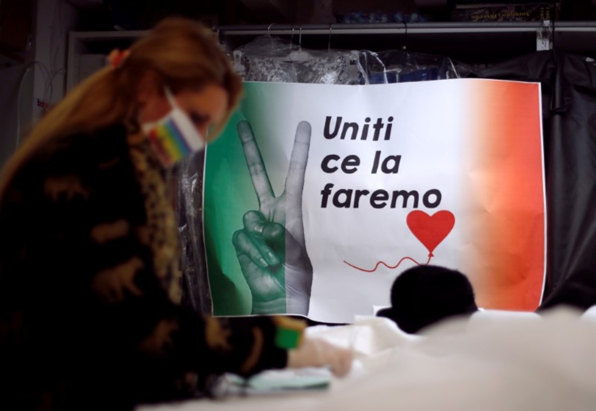 An employee sews a protective face mask with the phrase 'andra tutto bene' that means 'everything will be ok', sewn onto it - a phrase that has a symbol of hope as Italy battles a spread of coronavirus disease (COVID-19), in a clothing factory of sisters Barbara, Lisa and Manuela De Virgilio, that usually makes women's fashionwear but now makes solely face masks, in Molfetta, southern Italy, March 25, 2020. REUTERS/Alessandro GarofaloProtective face masks created by De Virgilio sisters, with the phrase 'andra tutto bene' that means 'everything will be ok', sewn onto them - a phrase that has a symbol of hope as Italy battles a spread of coronavirus disease (COVID-19), are seen in their clothing factory that usually makes women's fashionwear but now makes solely face masks, in Molfetta, southern Italy, March 25, 2020. REUTERS/Alessandro GarofaloAn employee works on a protective face mask with the phrase 'andra tutto bene' that means 'everything will be ok', sewn onto it - a phrase that has a symbol of hope as Italy battles a spread of coronavirus disease (COVID-19), in a clothing factory of sisters Barbara, Lisa and Manuela De Virgilio, that usually makes women's fashionwear but now makes solely face masks, in Molfetta, southern Italy, March 25, 2020. REUTERS/Alessandro GarofaloBarbara De Virgilio works on a protective face mask with the phrase 'andra tutto bene' that means 'everything will be ok', sewn onto it, following an outbreak of the coronavirus disease (COVID-19), in Molfetta, southern Italy, March 25, 2020. The banner reads, "United we will make it". REUTERS/Alessandro GarofaloProtective face masks created by De Virgilio sisters, with the phrase 'andra tutto bene' that means 'everything will be ok', sewn onto them - a phrase that has a symbol of hope as Italy battles a spread of coronavirus disease (COVID-19), are seen in their clothing factory that usually makes women's fashionwear but now makes solely face masks, in Molfetta, southern Italy, March 25, 2020. REUTERS/Alessandro GarofaloCars drive past a sign reading "Coronavirus prevention. #istayhome" as the spread of the coronavirus disease (COVID-19) continues, on a freeway near Bari, Italy, March 25, 2020. REUTERS/Alessandro GarofaloA car drives past a sign reading "Everything's gonna be okay" as the spread of the coronavirus disease (COVID-19) continues, in Molfetta, Italy, March 25, 2020. REUTERS/Alessandro GarofaloAn empty highway is pictured as the spread of the coronavirus disease (COVID-19) continues, in Molfetta, southern Italy, March 25, 2020. REUTERS/Alessandro GarofaloItalian Prime Minister Giuseppe Conte receives a mobile device from a clerk as he addresses the lower house of parliament on the coronavirus outbreak, in Rome, Italy, March 25, 2020. REUTERS/Remo CasilliItalian Prime Minister Giuseppe Conte addresses the lower house of parliament on the coronavirus outbreak as politicians sit at least one metre away from eachother, in Rome, Italy, March 25, 2020. REUTERS/Remo CasilliSpeaker of the lower house Roberto Fico listens as Italian Prime Minister Giuseppe Conte (not seen) addresses the lower house of parliament on the coronavirus outbreak, in Rome, Italy, March 25, 2020. REUTERS/Remo CasilliItalian Prime Minister Giuseppe Conte addresses the lower house of parliament on the coronavirus outbreak as politicians sit at least one metre away from eachother, in Rome, Italy, March 25, 2020. REUTERS/Remo Casilli